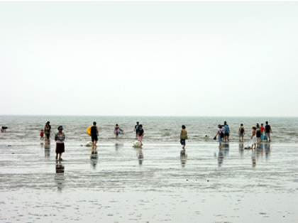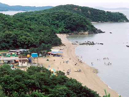 물이 빠지면 약 1km 정도의 갯벌이 나타나는데, 갯벌의 감촉이 부드럽고,조개, 게 등 갯벌에 서식하는 생물을 관찰할 수 있습니다 이곳의 갯벌과 모래에는 미네랄 성분이 다량으로 함유되어 있어 각종 부인병과 신경통, 여성들의 피부 미용에 탁월한 효과가 있다고 알려져 있습니다.