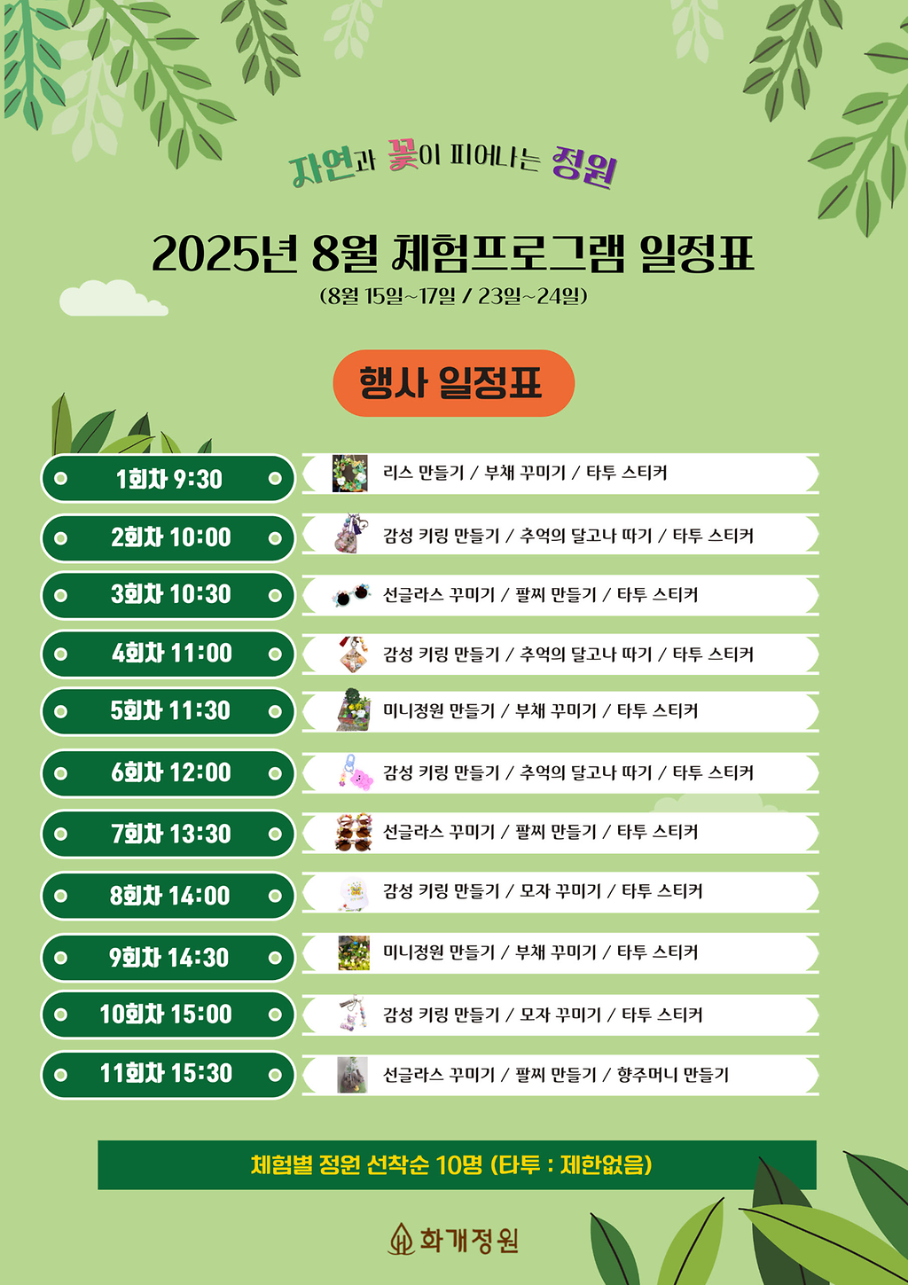 * 행사일시 : 2025. 8. 15.(금) ~ 8. 17.(일) / 8. 23.(토) ~ 8. 24.(일) / 09:30 ~ 15:30