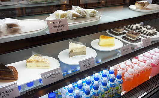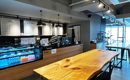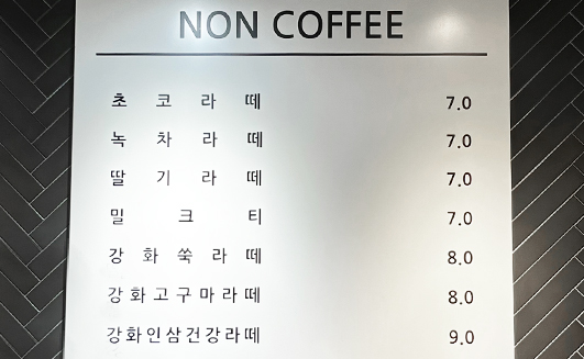 통 유리창 너머로 교동도 벌판을 보며 마시는 커피 한잔의 여유는 도심 속 지친 마음을 달래줍니다. 화개산 카페모노에서 커피 한잔 어떠세요?