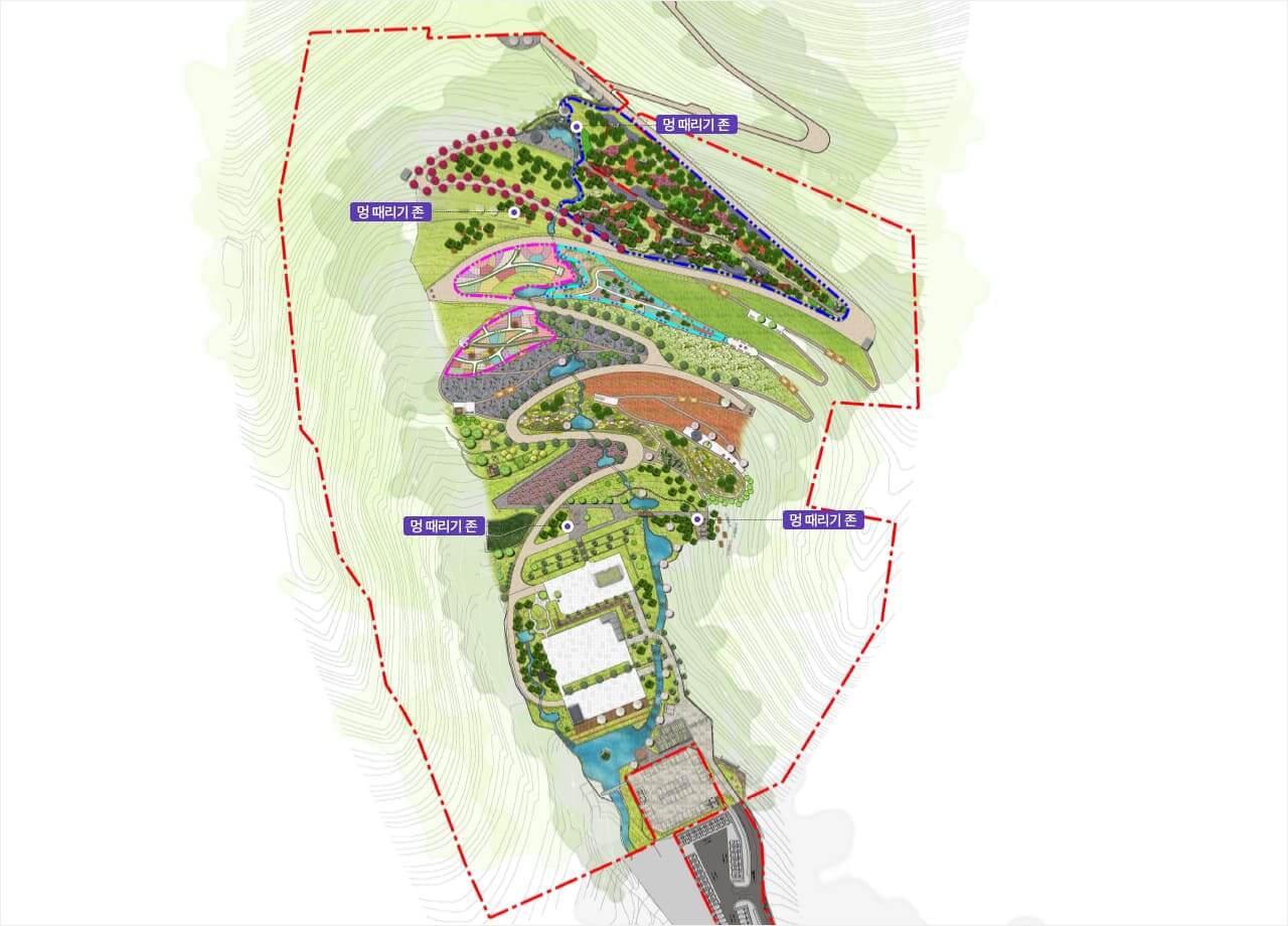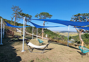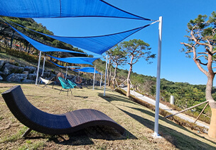 바쁜 현대인들에게 잠깐의 휴식과 힐링의 장소인 화개정원 '멍 때리기 ZONE' 입니다. 멍 때리기 Zone에 설치된 썬베드, 해먹, 의자 등에서 편안하게 ‘멍 때리기’하시고 힐링하세요.