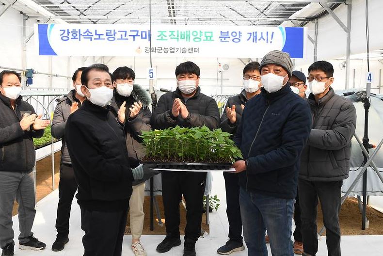 군은 ‘강화속노랑고구마’의 품질과 상품성이 우수한 조직배양묘를 육묘농가에 이날부터 본격적으로 공급한다고 밝혔다. 이번 조직배양묘는 육묘하우스에서 증식해 내년부터는 씨고구마로 일반농가에 공급된다.