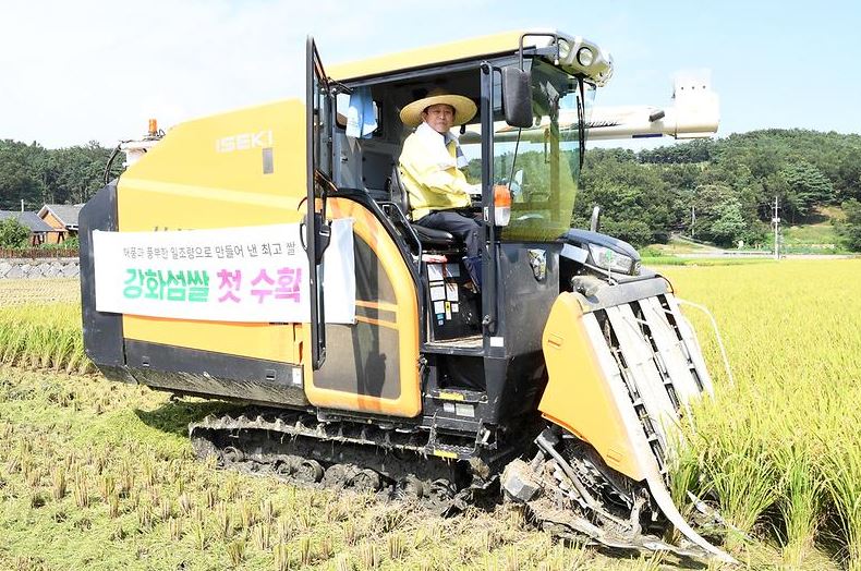 유천호 강화군수는 26일 강화읍 용정리 벌판에 있는 김학빈 농가를 찾아 직접 콤바인에 탑승해 첫 수확을 했다. 이어 긴 가뭄과 집중호우를 이겨내고 땀의 결실을 수확하는 농가를 격려하고, 수확의 기쁨을 함께 나누었다.