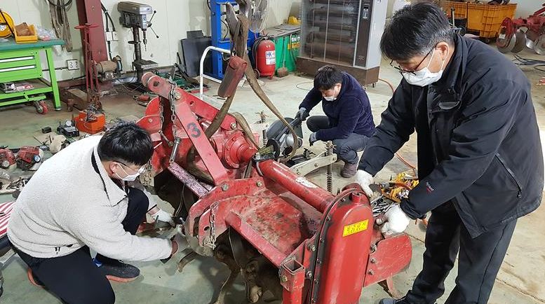 강화군(군수 유천호)이 본격적인 영농철에 대비해 농기계은행 임대장비의 사전정비에 구슬땀을 흘리고 있다.