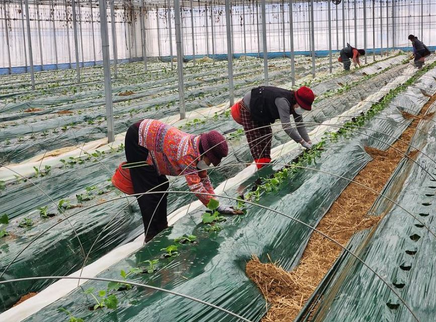 첨단농업육성사업으로 설치한 연동비닐하우스에서는 매서운 추위를 이겨내고 오이 정식이 이어지며, 농가의 웃음꽃이 활짝 폈다. 이번에 심은 오이는 봄기운이 완연한 3월 초에 맛볼 수 있다.
