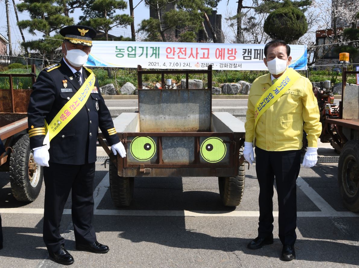 강화군(군수 유천호)은 강화경찰서(서장 서민)와 함께 7일 선원면사무소 광장에서 농업인의 농기계 사고를 예방하기 위한 농기계 안전스티커 부착 캠페인을 펼쳤다.