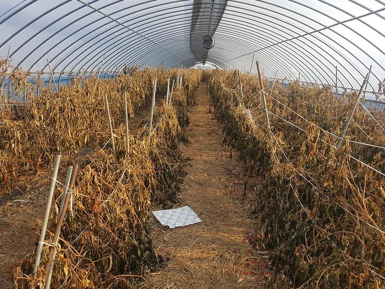 고추 농사의 경우 10월 중순이면 수확이 마무리된다. 수확 후 고추 잔재물을 방치하면 고추의 병든 과실이나 가지에서 병원균이 월동을 하기 때문에 포장을 먼 곳으로 치워야 한다.