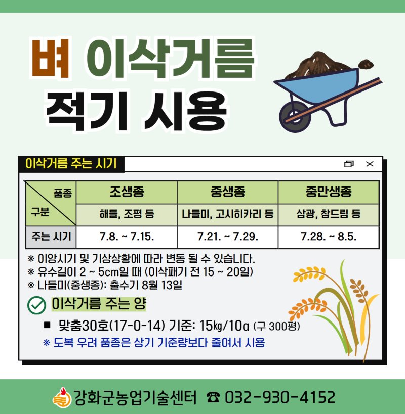 벼 이삭거름 적기 시용 안내