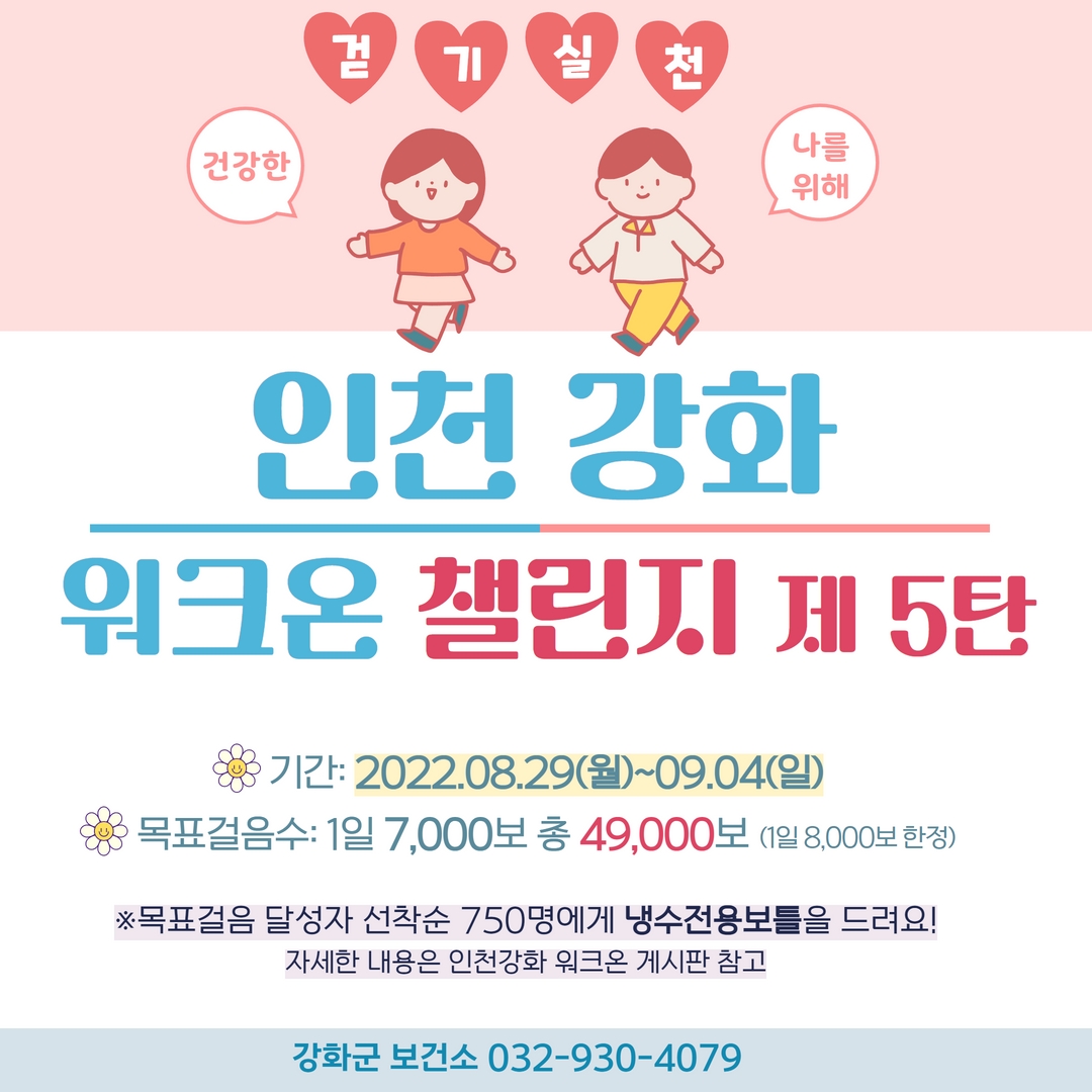 < 인천강화 커뮤니티 워크온 챌린지 제 5탄 (건강한 나를위해) 안내>