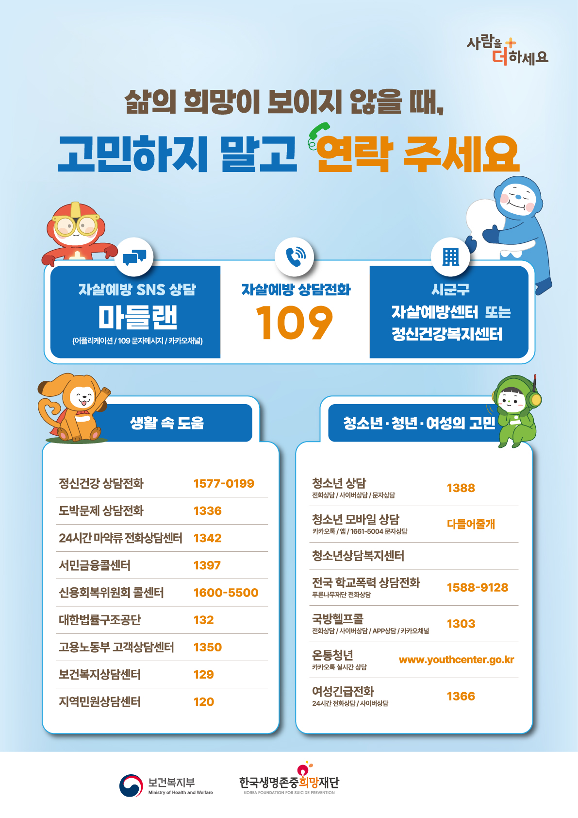 고민하지 말고 연락 주세요!(자살예방 포스터)