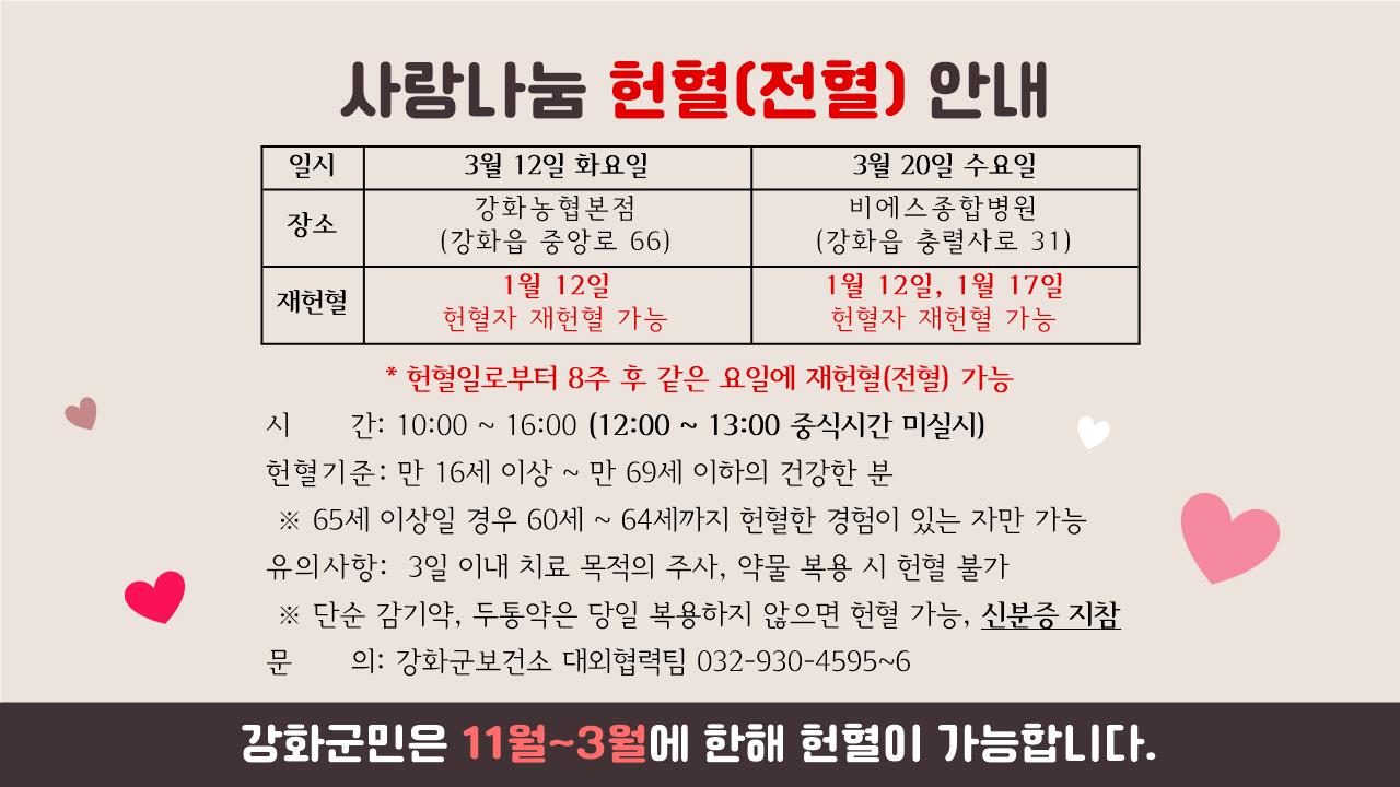 강화군민은 11월~3월에 한해 헌혈이 가능합니다.