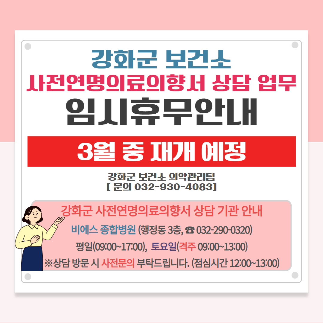 사전연명의료의향서 상담 업무 임시 휴무 안내