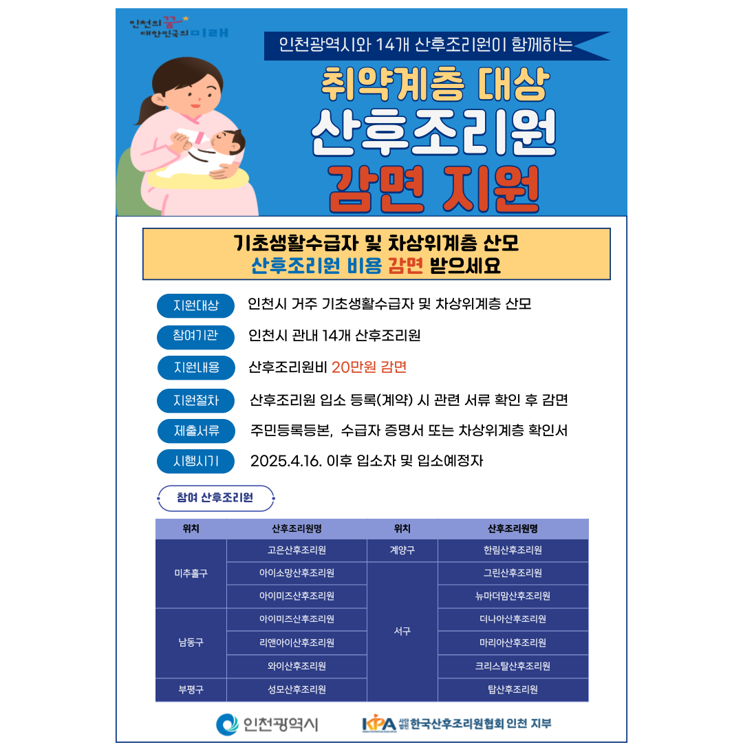취약계층 산모 산후조리원 감면 지원 안내