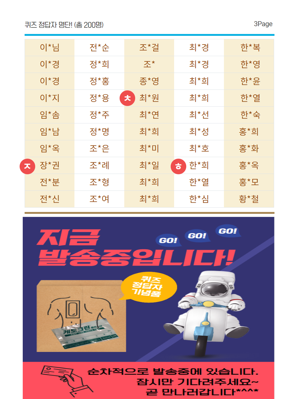 📢 정확한 주소를 기입한 당첨자(정답자) 200명에게는 소정의 기념품(케토크린)을 5월 중 순차적으로 발송하고 있으니 조금 천천히 기다려주세요~