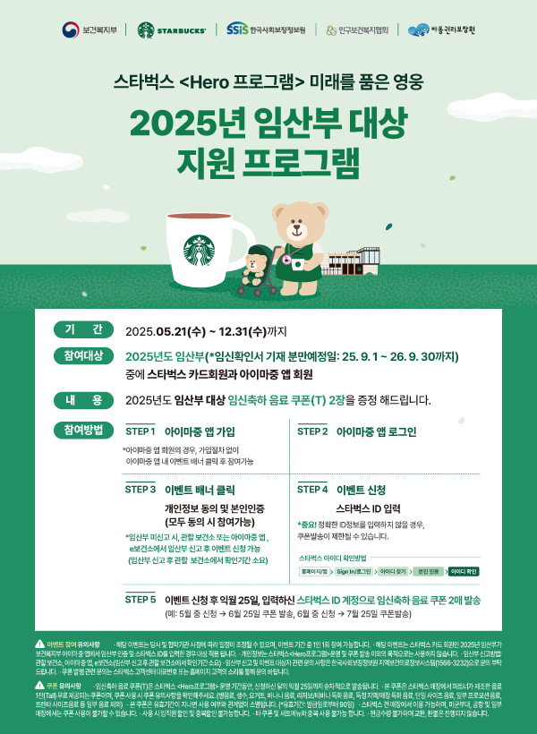 임산부 대상 이벤트(스타벅스 Hero 프로그램) 안내