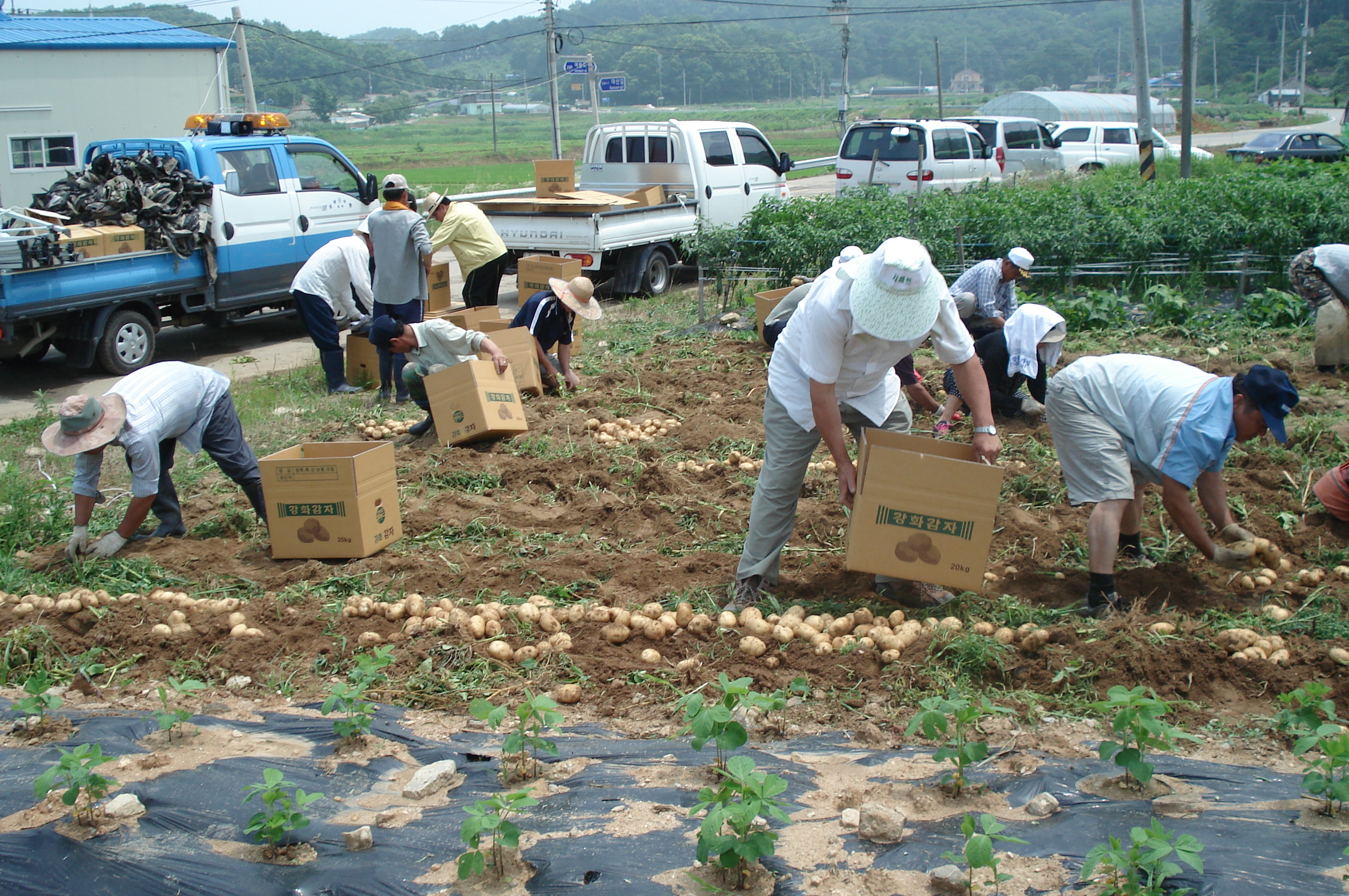 2009.07.03 주민자치위원회에서 지난 4월 식재한 감자를 수확하였습니다.