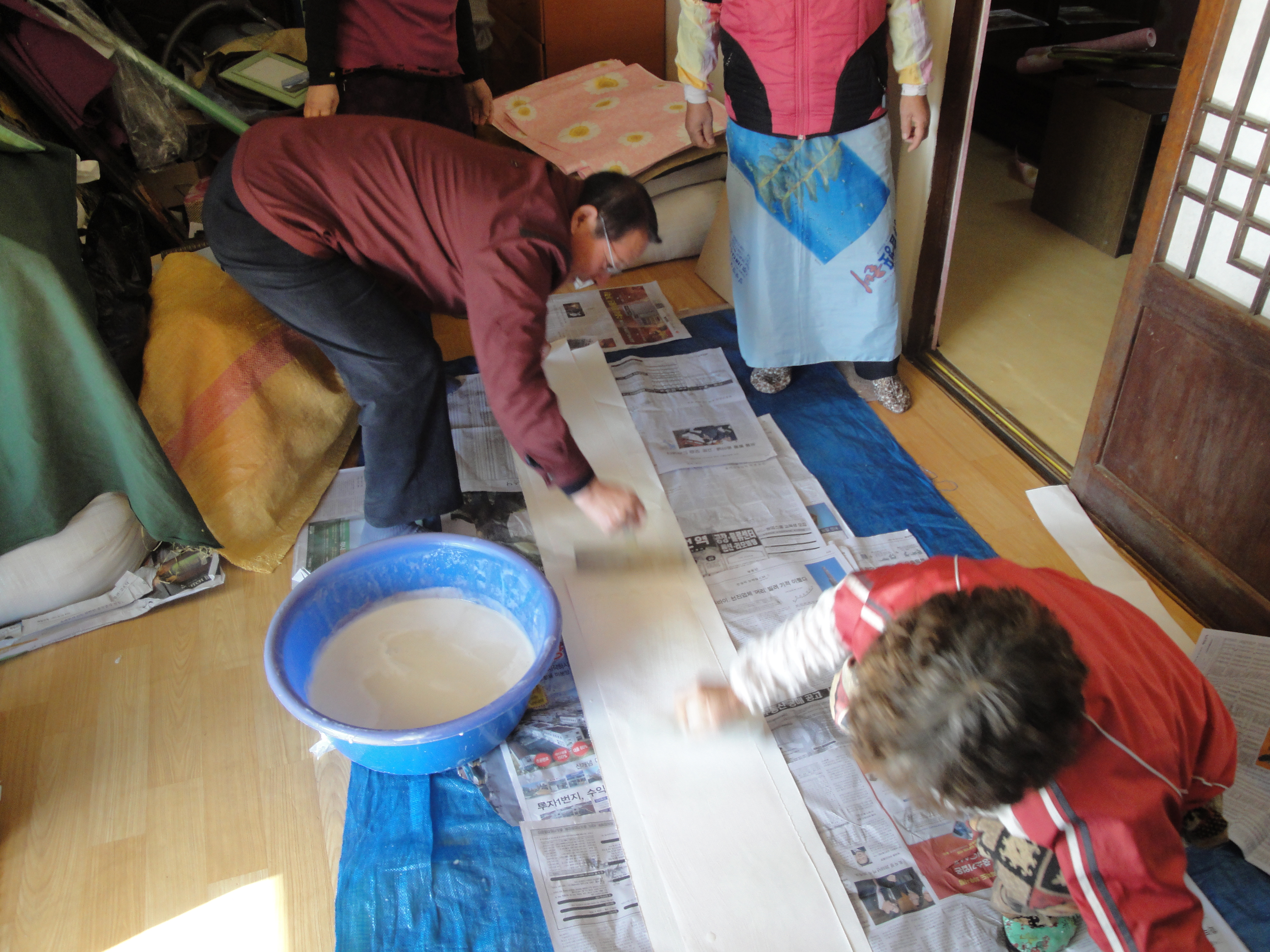 희망근로자들에게 감사하다는 격려의 인사말과 함께 직접 풀칠 등 을 하는 등 흐믓한 모습을 보였다.