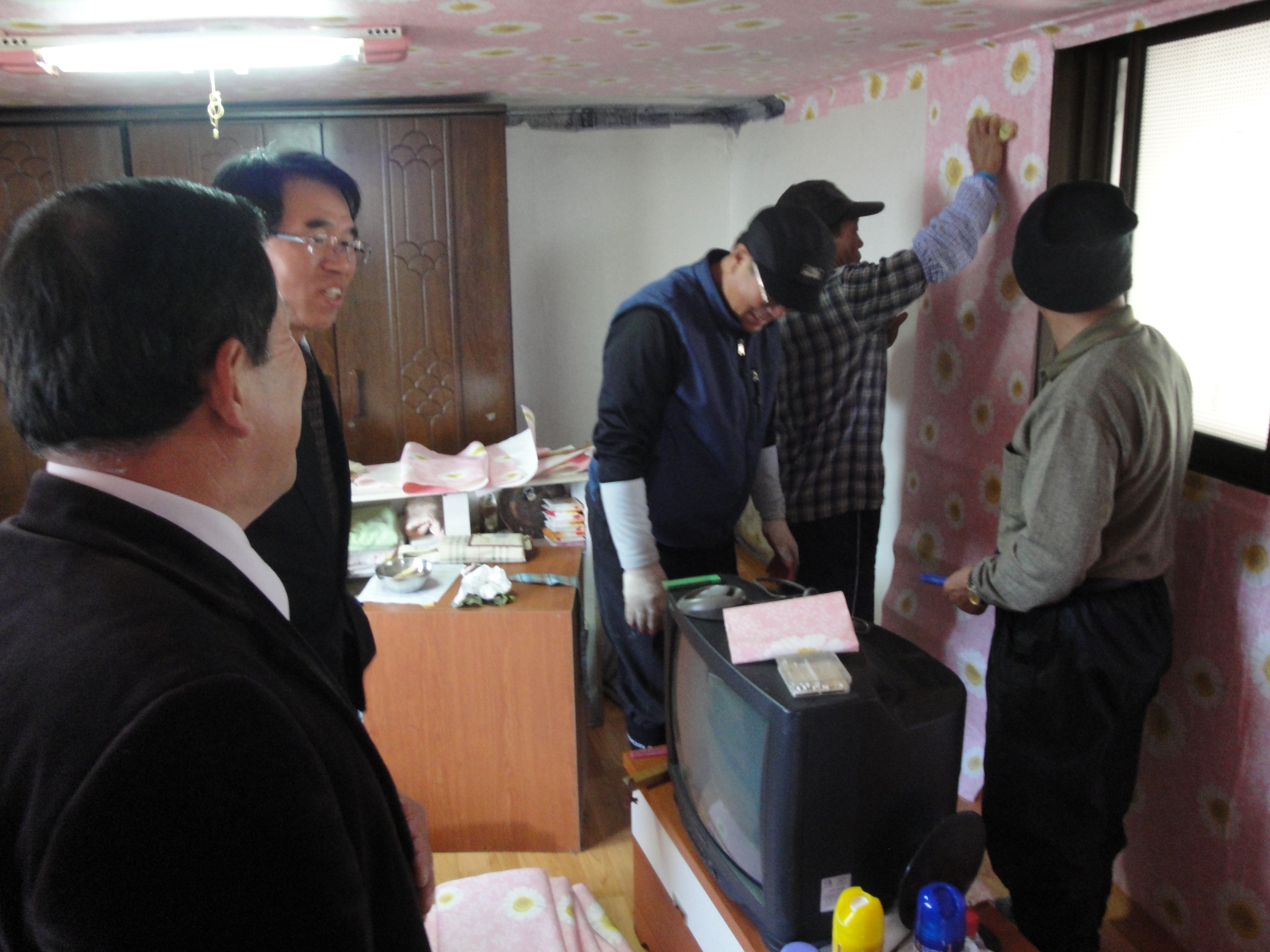 함께 현재 희망근로 프로젝트 사업으로 추진하고 있는 관내 독거노인집에 도배, 장판을 교체 해주는 현장을 방문하여