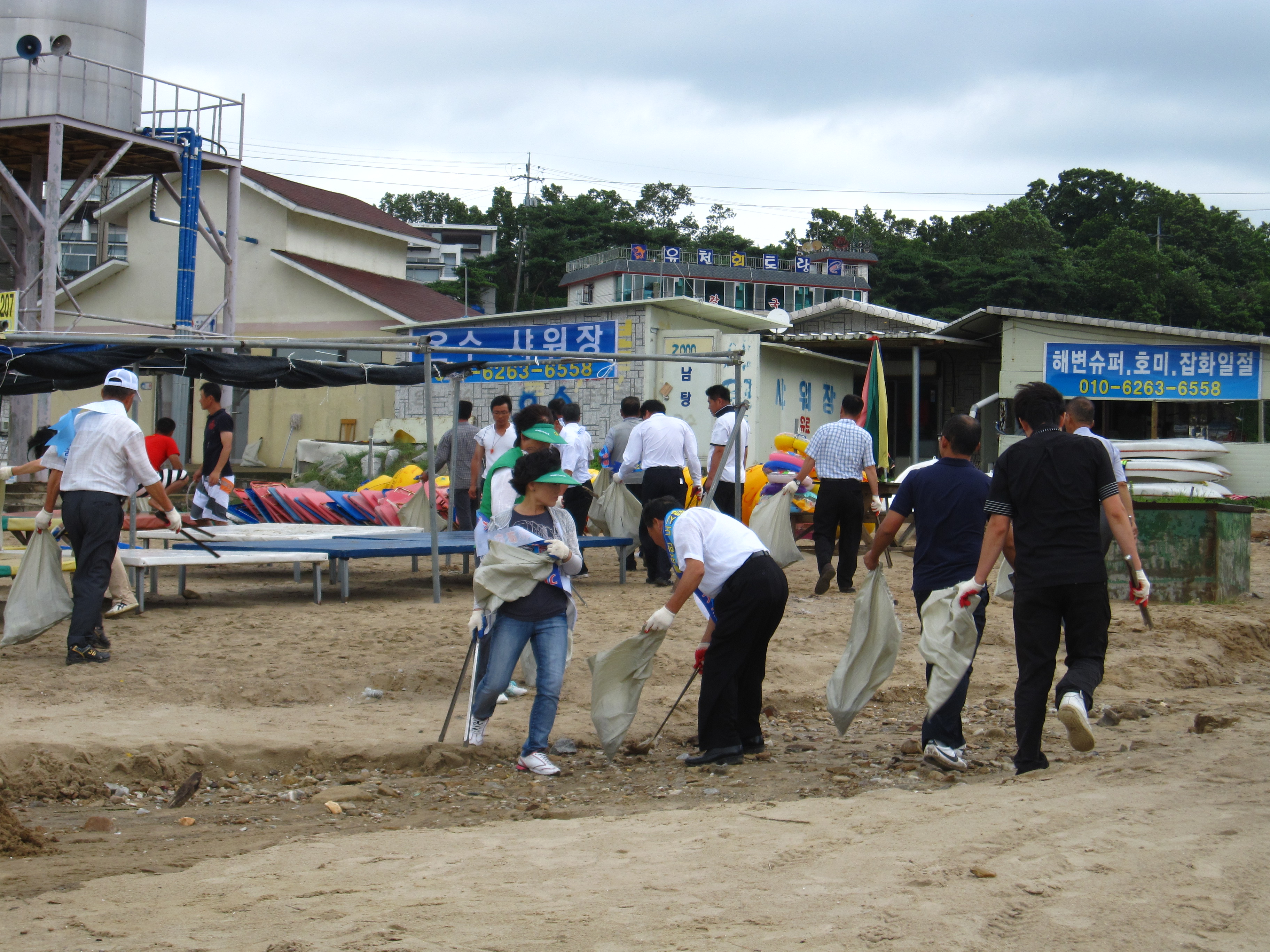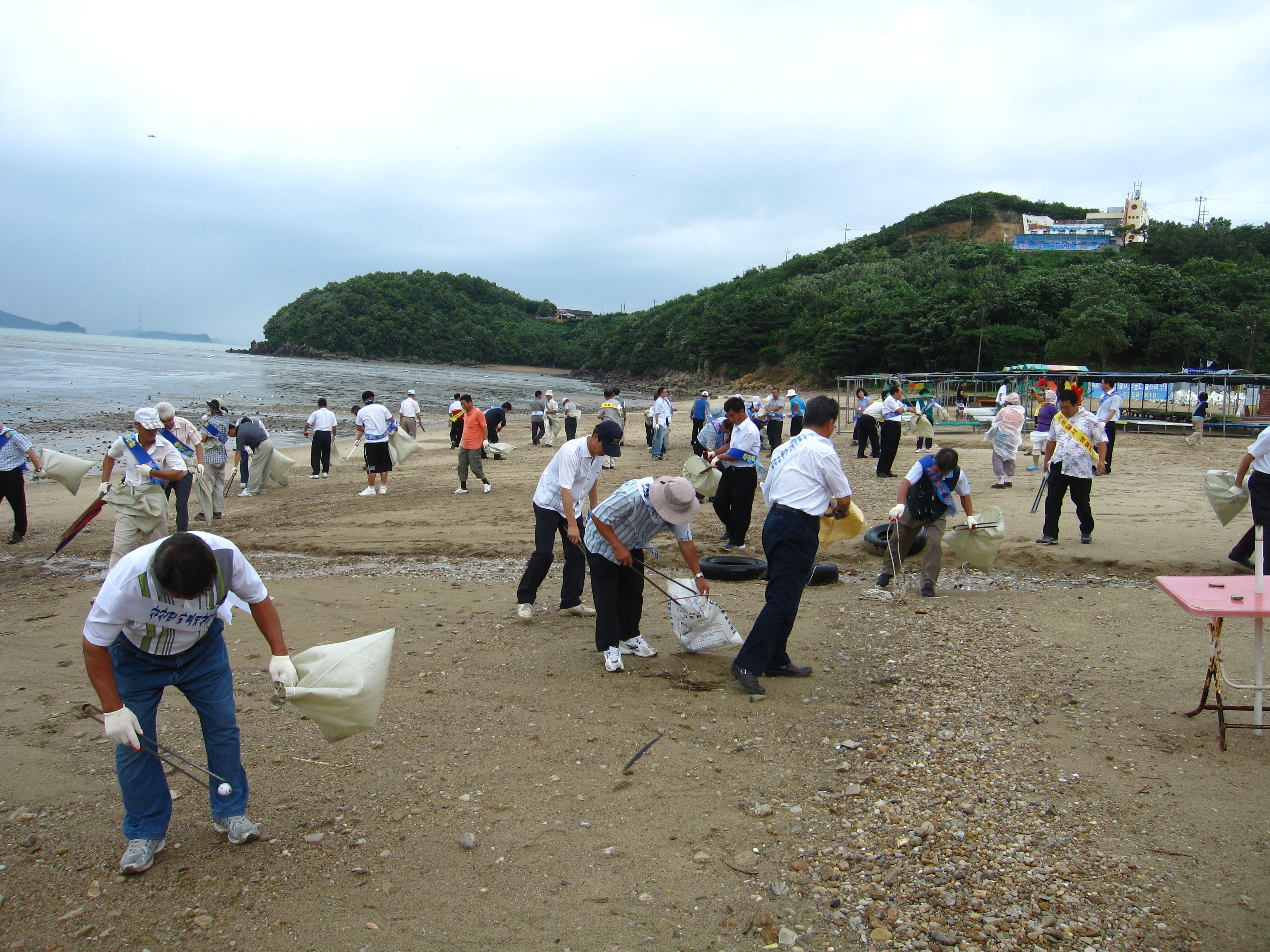 0 이날 간간히 비가 오는 궂은 날씨에도 불구하고 참가자들은 바다쓰레기와 관광객들이 버린 쓰레기 5톤 가량을 수거하는 성과를 올렸으며