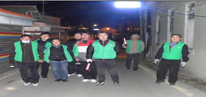 새마을지도자는 매주 수요일 7명씩 조를 짜서 도보로 순찰을 실시하고 있다.