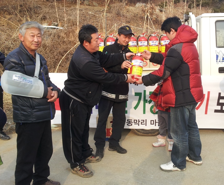 화도면 동막리(이장 고승호)에서는 2월 25일 화재예방을 위해 마을주민 150여세대에 가정용 분말식소화기를 배부했다.