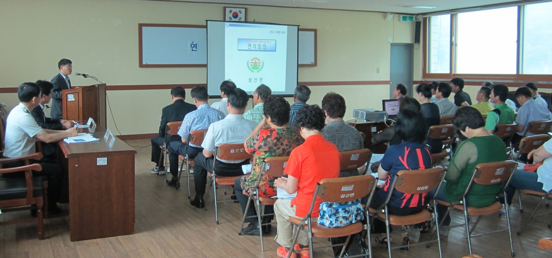 ○ 삼산면(면장 이선우)은 지난 9일(화) 면사무소 2층 회의실에서 관내 기관단체장, 이장단, 새마을 남·녀지도자 등 45명이 참여한 가운데 상반기 리장회의 등 연석회의를 가졌다.