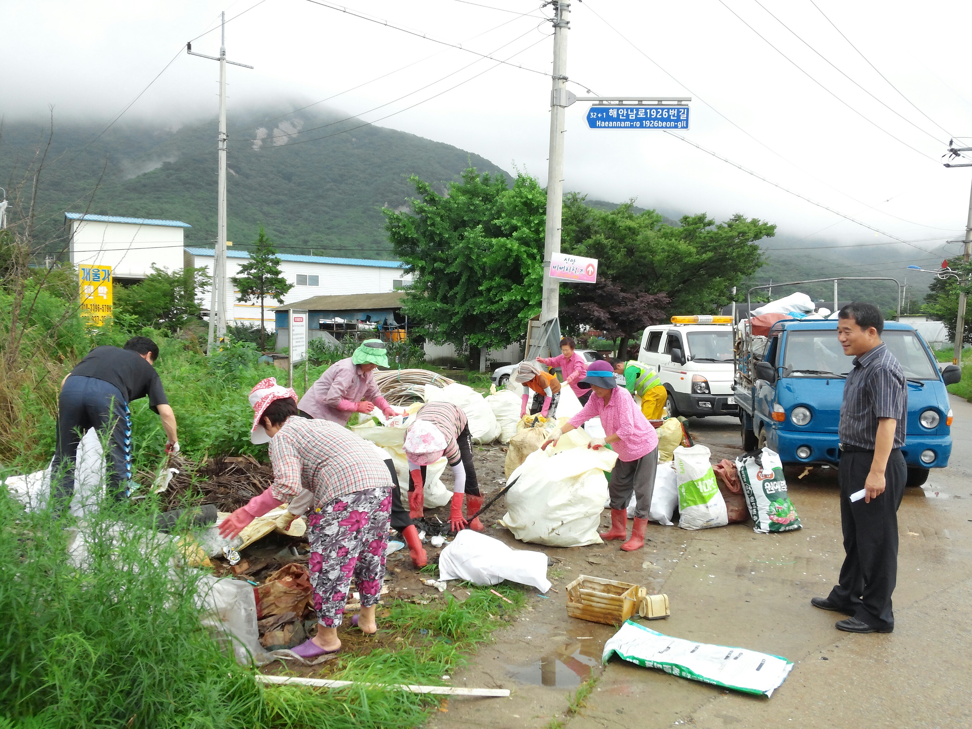 이 날 마을 주민들은 장마 비가 잠시 그친 틈을 이용해 행락객이 무질서하게 버리고 간 쓰레기를 분리하는 작업을 하며 환경보호를 몸소 실천에 옮겼다.