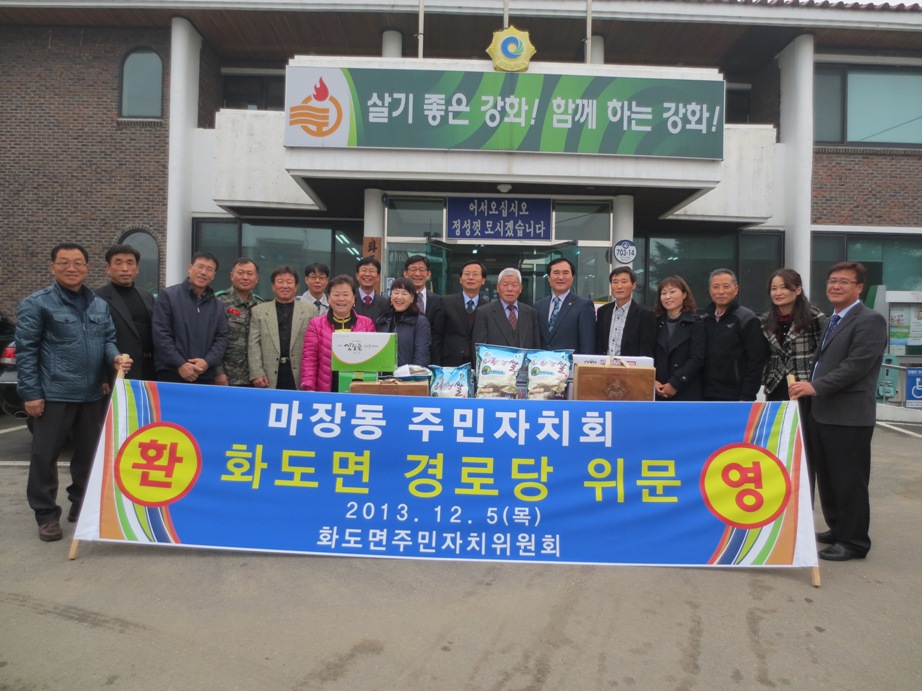 강화군 화도면(면장 김종석)에서는 12월 5일 서울 성동구 마장동주민자치회에서 경로당 어르신들을 위해 마련한 특산물을 전달하는 행사를 가졌다.