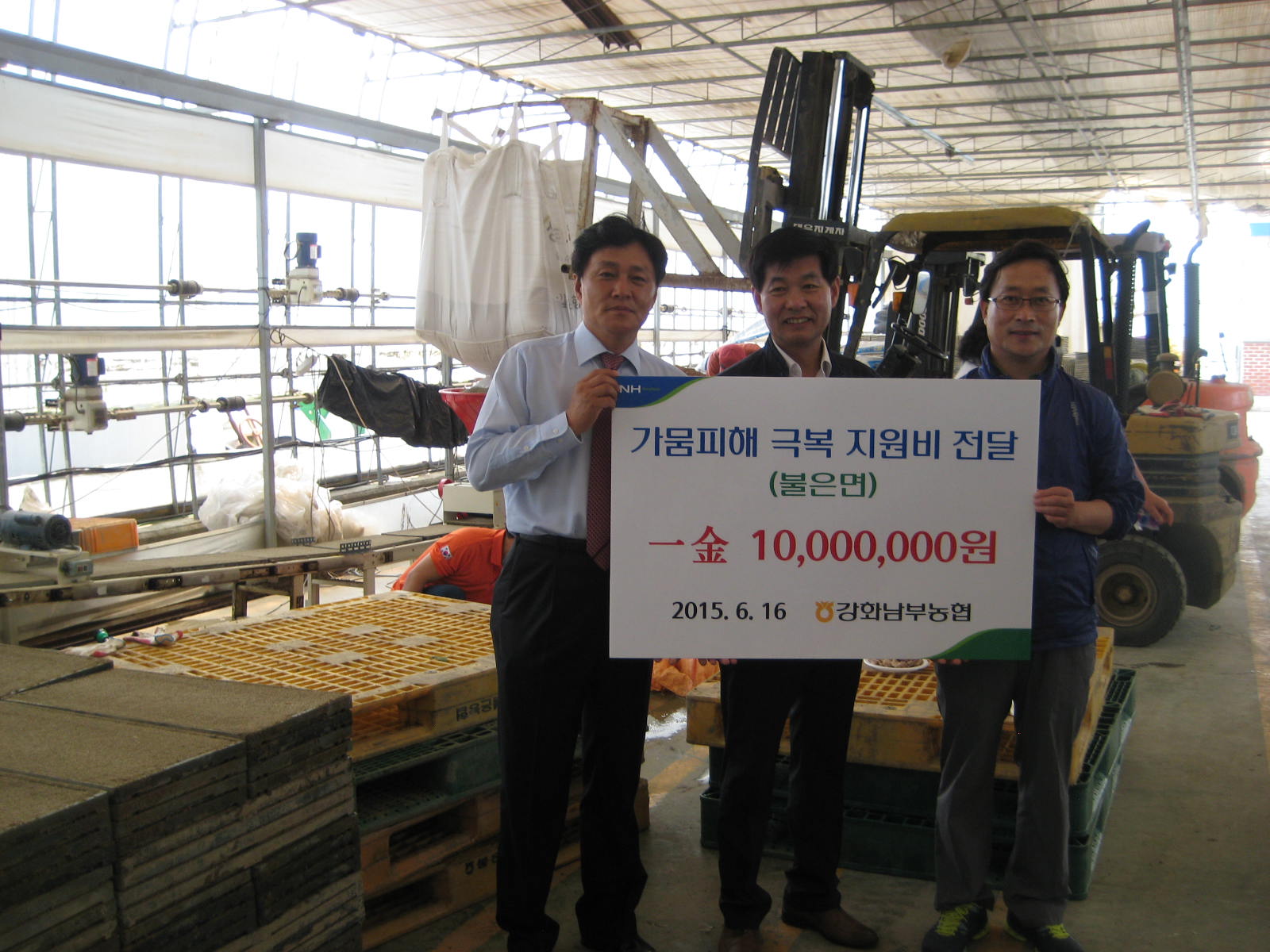 현재 불은면 지역의 모이앙 후 물부족으로 고사된 면적은 광성포 지역 33필지 약 3만평이다. 한편 강화남부농협 고석현 조합장과 이사들은 16일 불은농협지점 육묘장을 방문 고사모 재이앙 작업에 솔선하는 이장단과 관계자들을 격려하고 한해대책지원금과 강화군과 협력하여 못자리 재이앙에 필요한 제반비용과 인력 장비들을 지원, 7월 10일까지 비가 올 경우 모이앙을 한다는 방침이다.