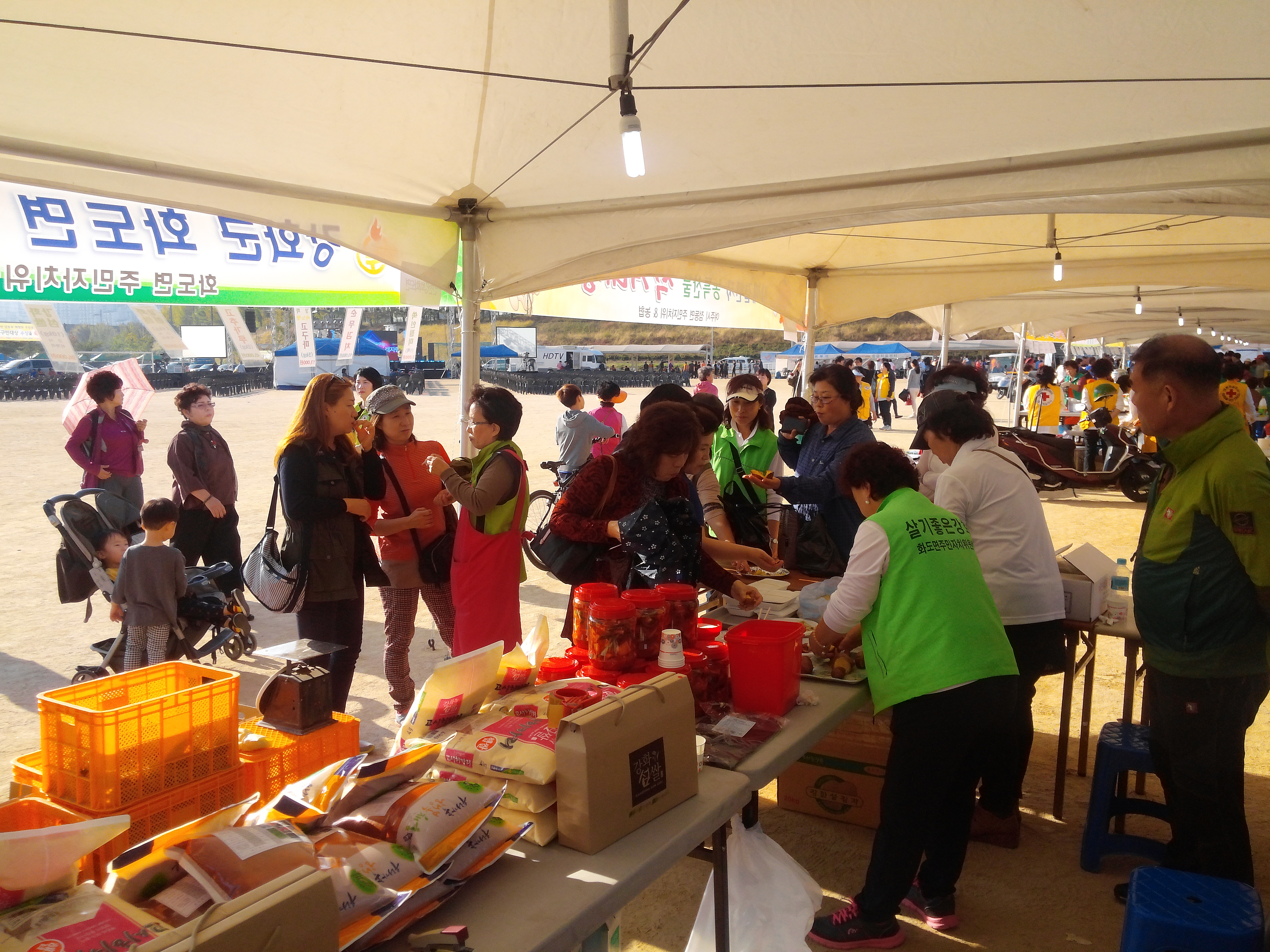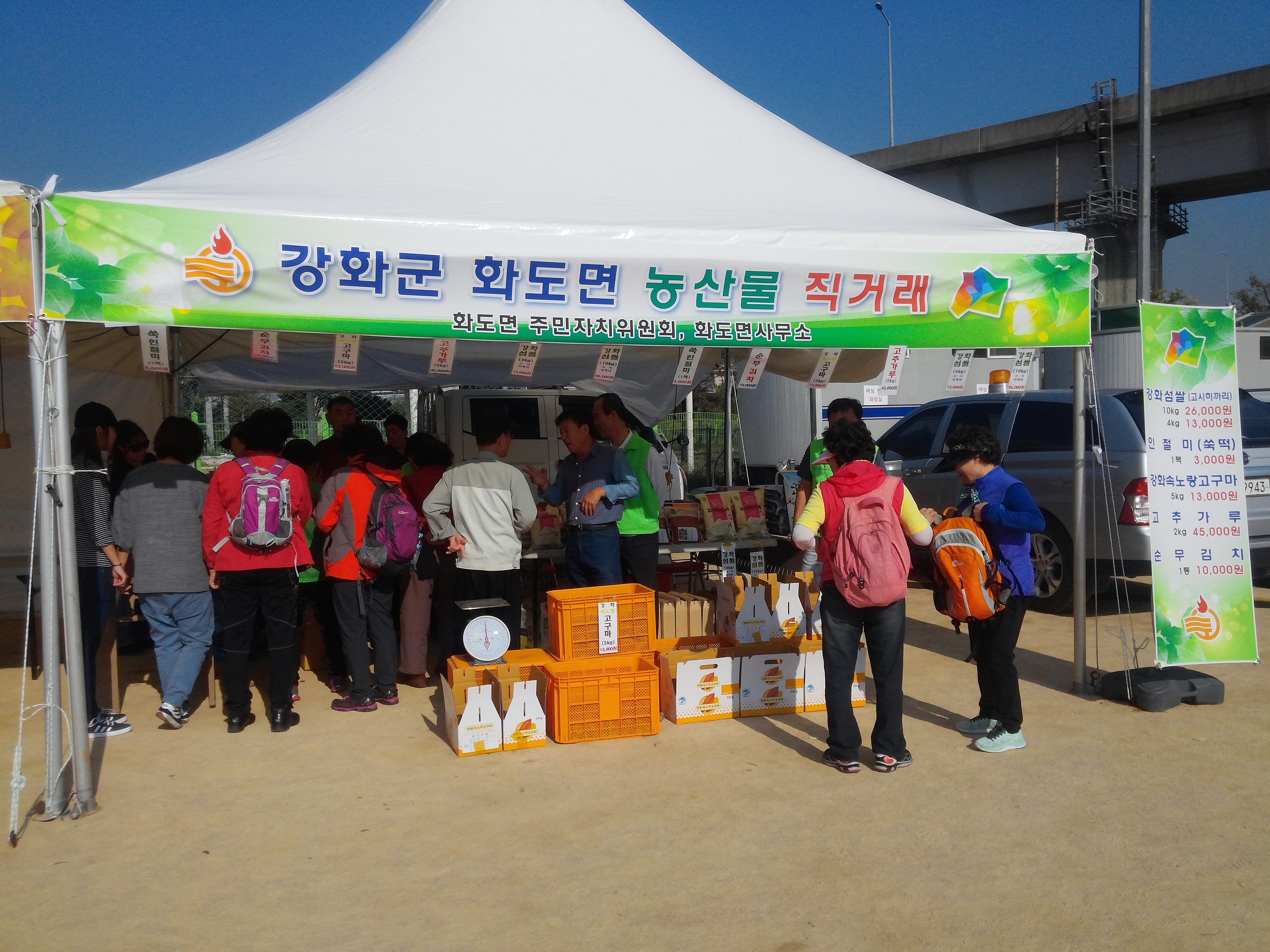이날 행사는 이기연 화도면장을 비롯하여 김순미 화도면 주민자치위원장 등 8명이 화도면에서 생산된 속노랑고구마 150kg과 강화 섬쌀, 약쑥인절미, 고춧가루 등 300여만원어치의 우수한 강화군의 농산물을 시중보다 저렴하게 판매하여 성동구 지역주민들의 큰 호응을 얻었습니다.