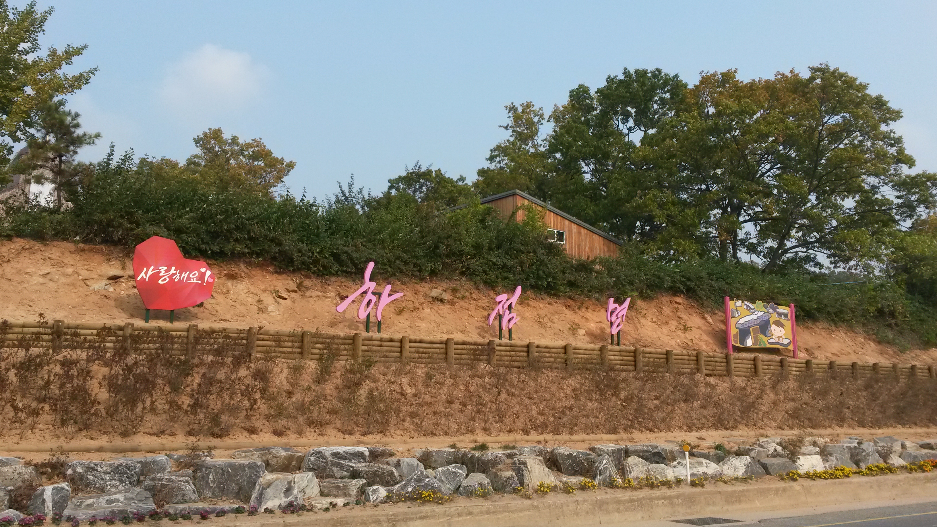 절개지 공사에“사랑해요 하점면!”공작물 설치로 아름다운 농촌마을 조성과 애향심을 고취