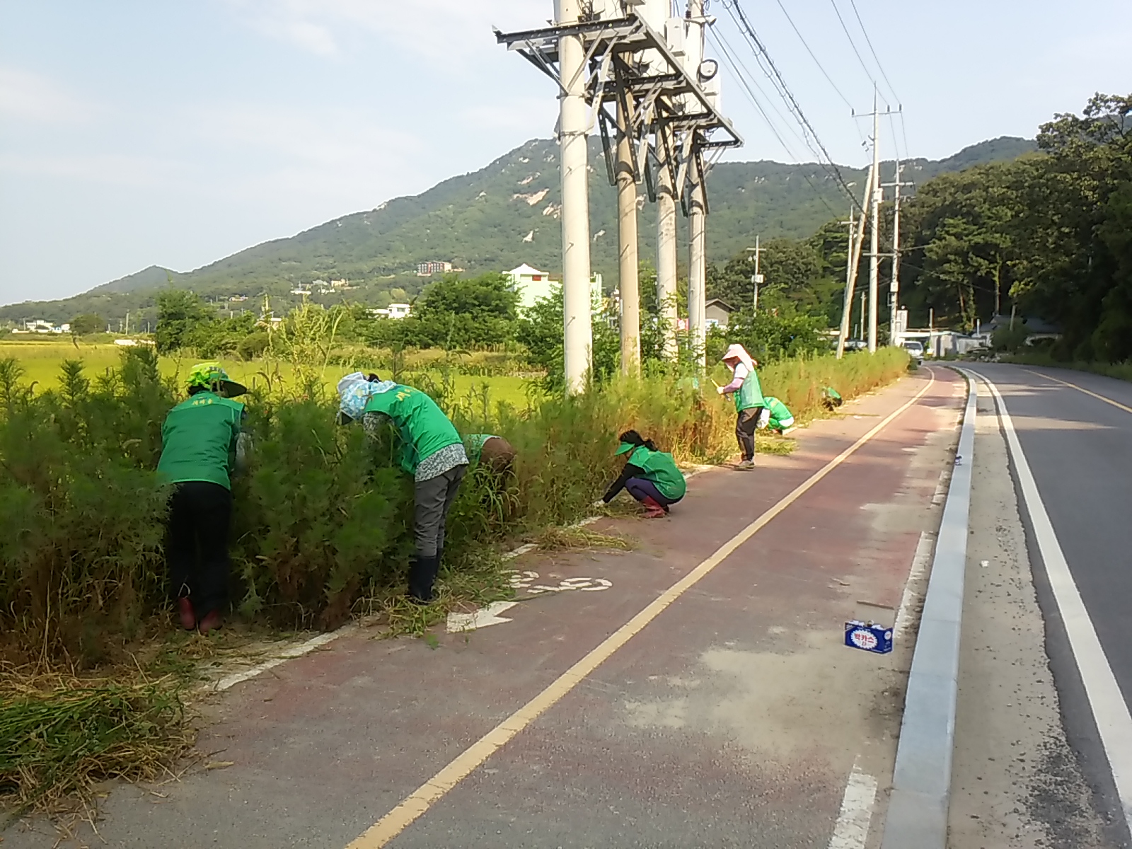 삼산면 부녀회 코스모스 꽃길 조성 등 환경정비 실시(2015. 9. 1)