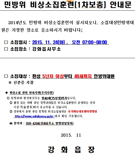 2015년도 1차 민방위 비상소집 안내