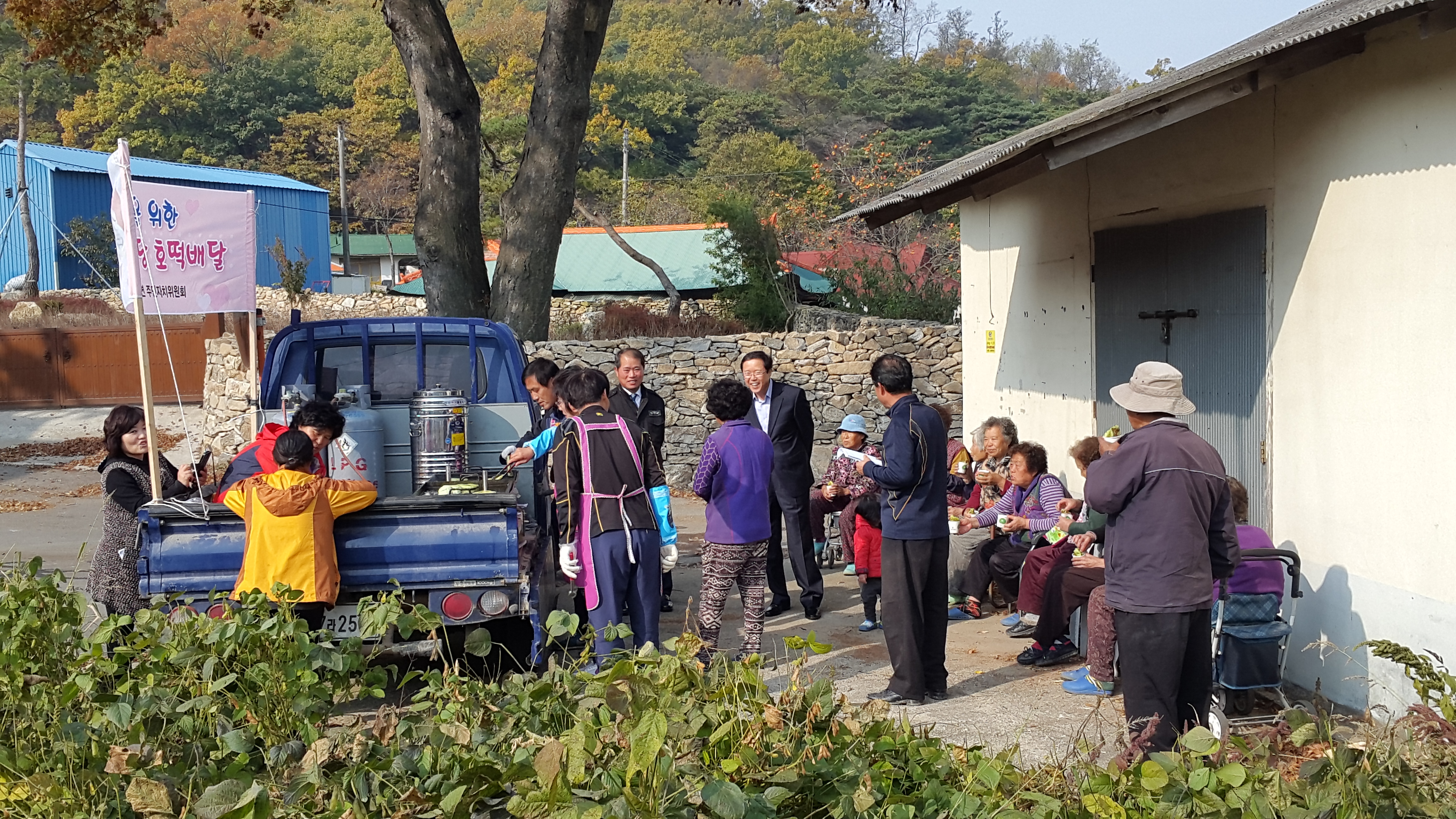 김 위원장은 “가을 추수가 다 끝나가는 시점에 농촌지역의 특성상 자주 먹어 볼수 없는 호떡이라는 간식으로 어르신들을 대접하게 되었으며 웃는 얼굴로 기쁘게 드시는 모습을 보며 오히려 즐거움을 느낀 쪽은 우리 위원들이었다. 앞으로도 어르신들에게 함께 행복하고 기뻐할 수 있는 기회를 자주 마련하기 위해 최대한 노력을 기울이겠다”고 말했다.