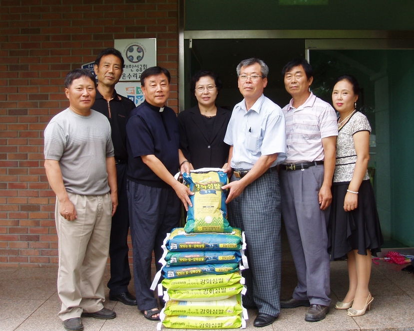 주민자치위원이 월별로 2인1조가 되어 대한성공회 온수리교회(푸드마켓)에 매월 쌀 80kg을 전달하여