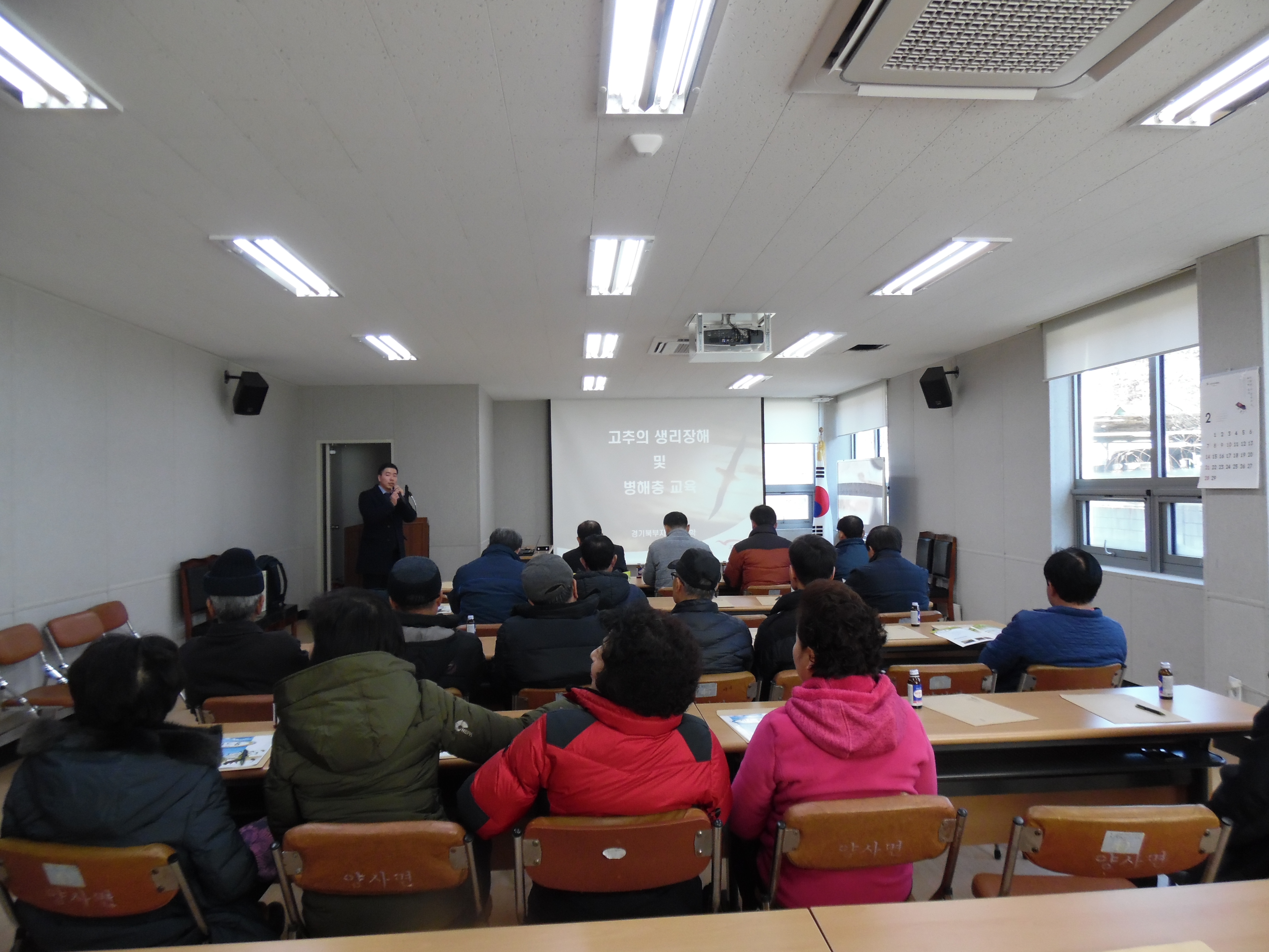 양사면 주민자치위원회와 자매결연을 맺은 농약전문 제조 회사 (주)동방아그로 북부지점 관계자가 교육을 맡아 진행하였으며 강의 내용은 고추의 생리장해 및 병충해에 관해 다루어졌다.