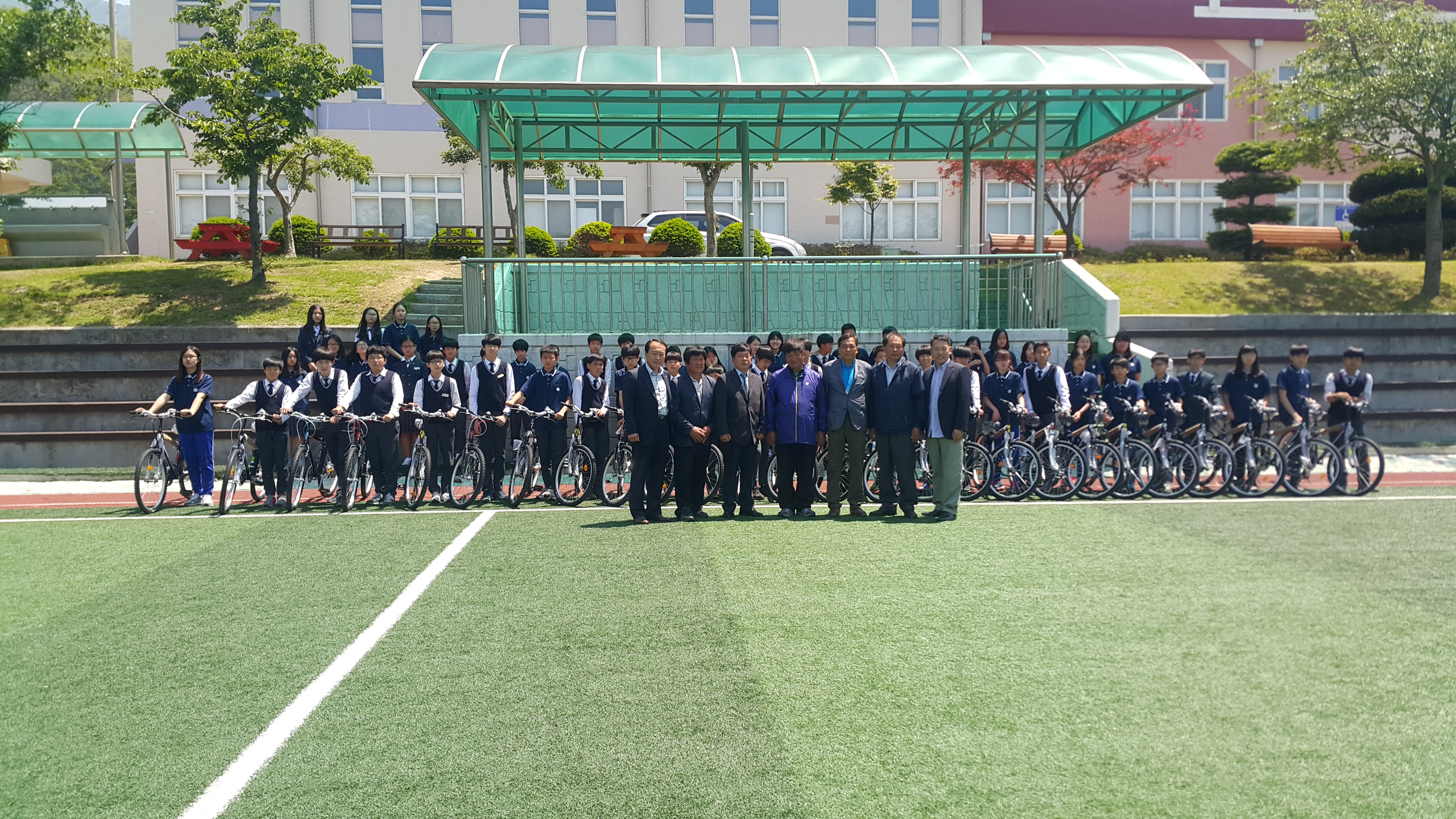 양도면 체육진흥후원회(후원회장 유장규)는 지난 18일 동광중학교 학생들을 위한 뜻깊은 자전거 기증식을 진행했다.