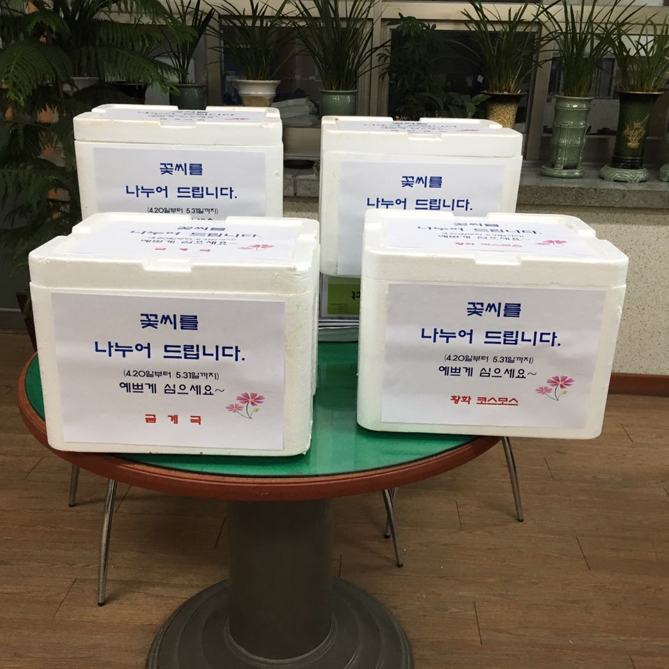 맨드라미, 샤스타데이지, 백일홍 등 총6가지 종류의 꽃씨를 진열하여 지역주민들이 필요한 만큼 가져 갈 수 있도록 면사무소에 진열해 두었다.