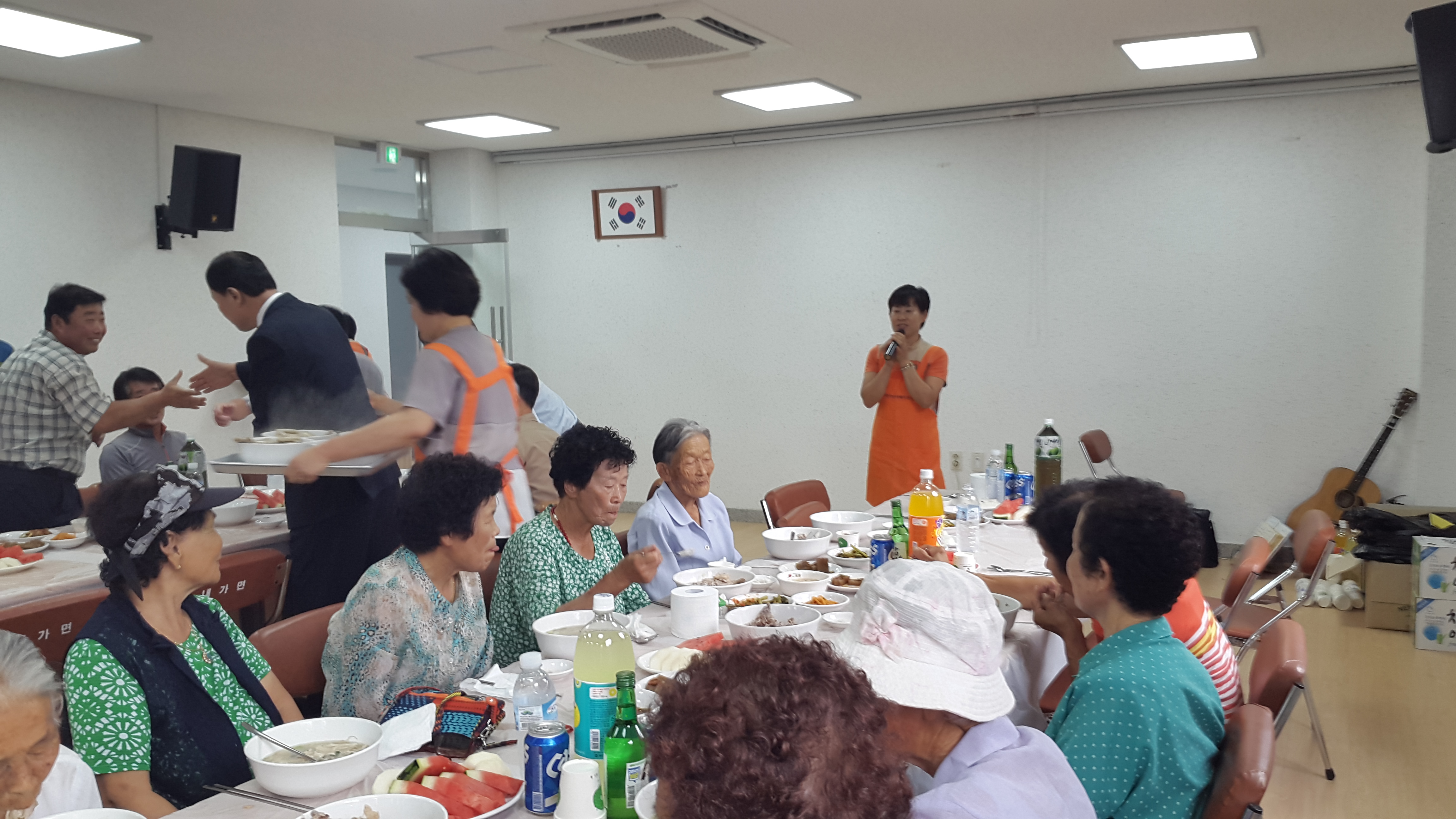이 날 음식나눔 행사는 황경남 주민자치위원장과 위원들이 삼계탕과 떡 등을 준비해 관내 독거노인 70여분을 대상으로 내가면 주민자치센터로 자치위원들이 직접 모셔와 점심을 대접하고 개인상비약인 파스세트도 나누어 드리며 성황리에 치루어 졌다.