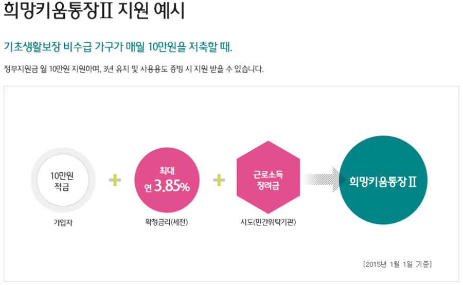 희망키움통장Ⅱ는 주거·사업소득이 기준 중위소득 50%의 60% 이상인 가구가 대상으로