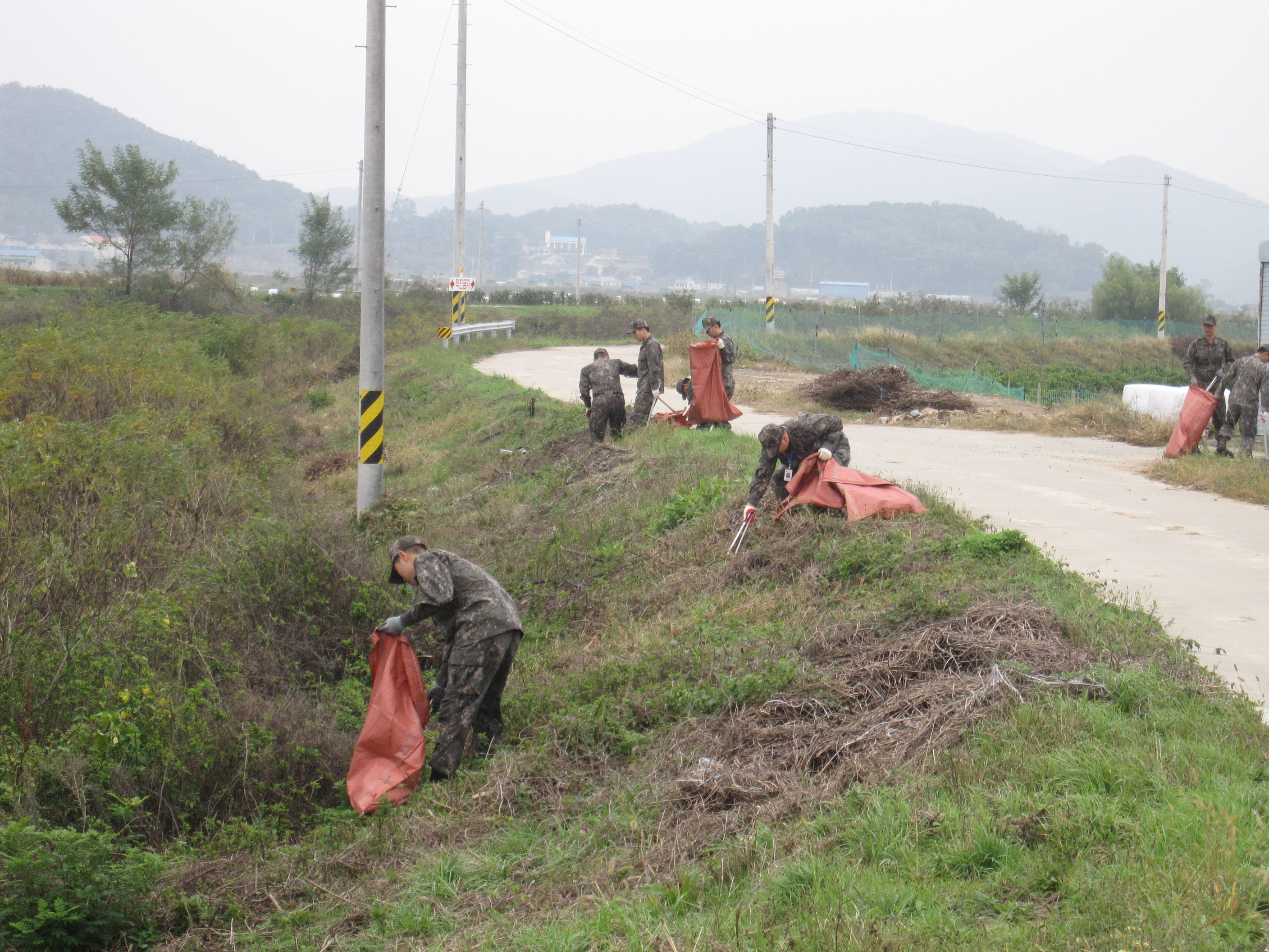 이날 참여한 장병들은 면사무소에 준비한 집게 및 마대로 하점면 삼거천하류 일원을 순회하면서 낚시꾼들이 버린 생활쓰레기 및 폐기물 등 1톤을 수거하였다.