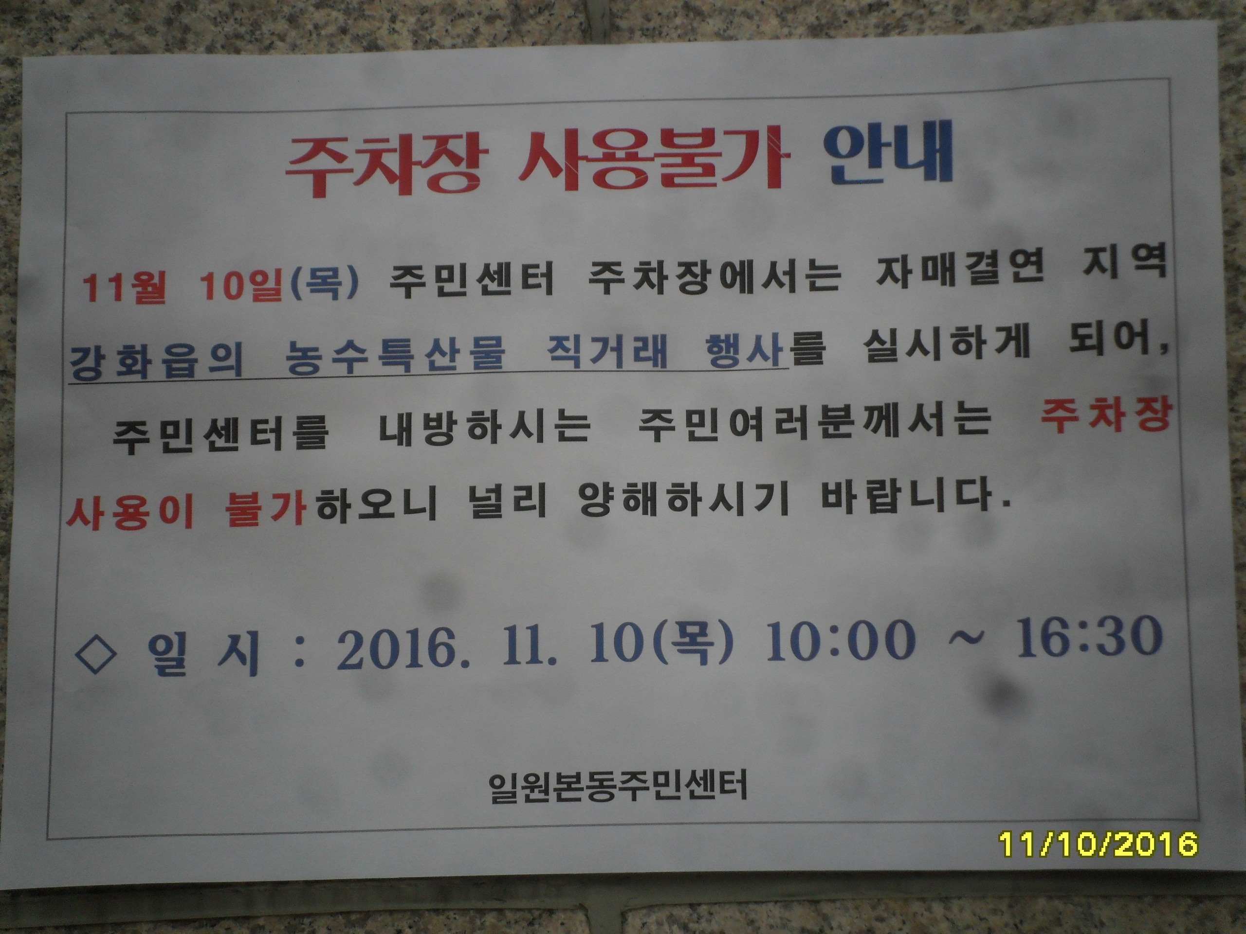 2016년도 강화읍 주민자치위원회 강남구 일원본동 농산물 적거래 장터 운영 결과