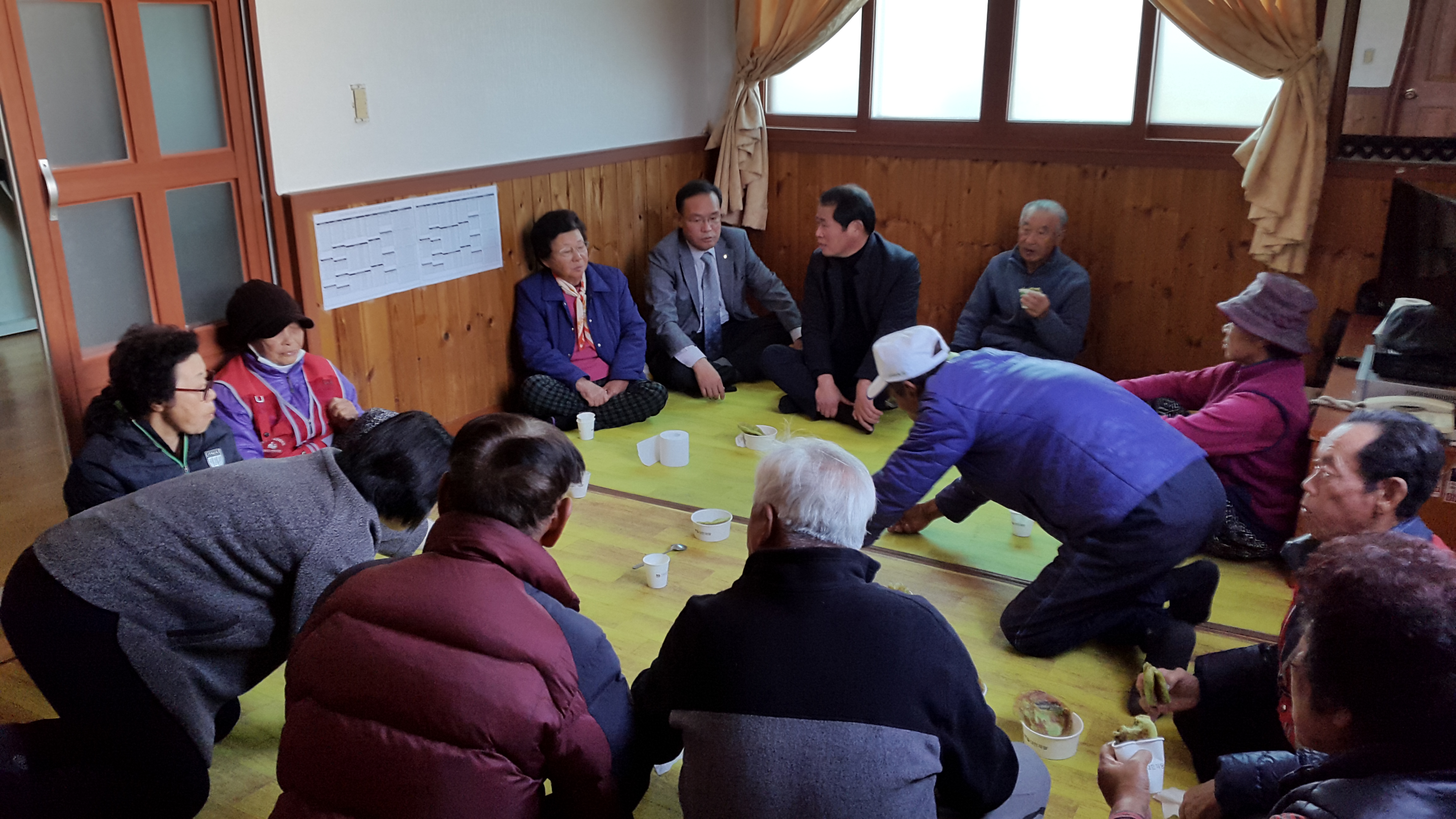 황 위원장은 “가을 추수가 다 끝나가는 시점에 농촌지역의 특성상 자주 먹어 볼수 없는 호떡이라는 간식으로 어르신들을 대접하게 되었으며 웃는 얼굴로 기쁘게 드시는 모습을 보며 오히려 즐거움을 느낀 쪽은 우리 위원들이었다. 앞으로도 어르신들에게 함께 행복하고 기뻐할 수 있는 기회를 자주 마련하기 위해 최대한 노력을 기울이겠다”고 말했다.