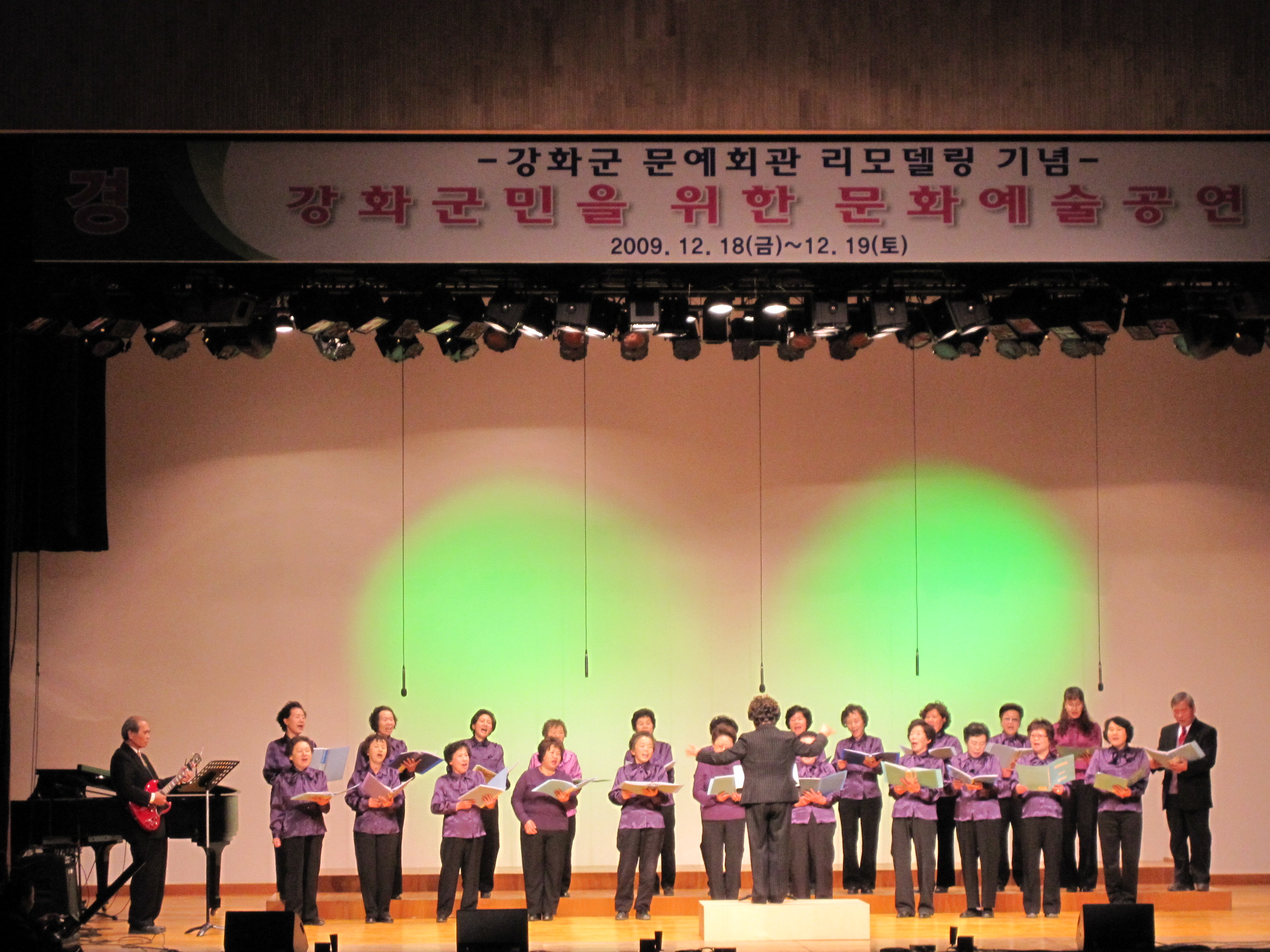 0 일 시 : 2009. 12. 18(금) 0 장 소 : 문예회관 0 참여자 : 노래교실반 수강생 0 내 용 : 하점면 대표로 강화군민의 노래 경연대회 참여