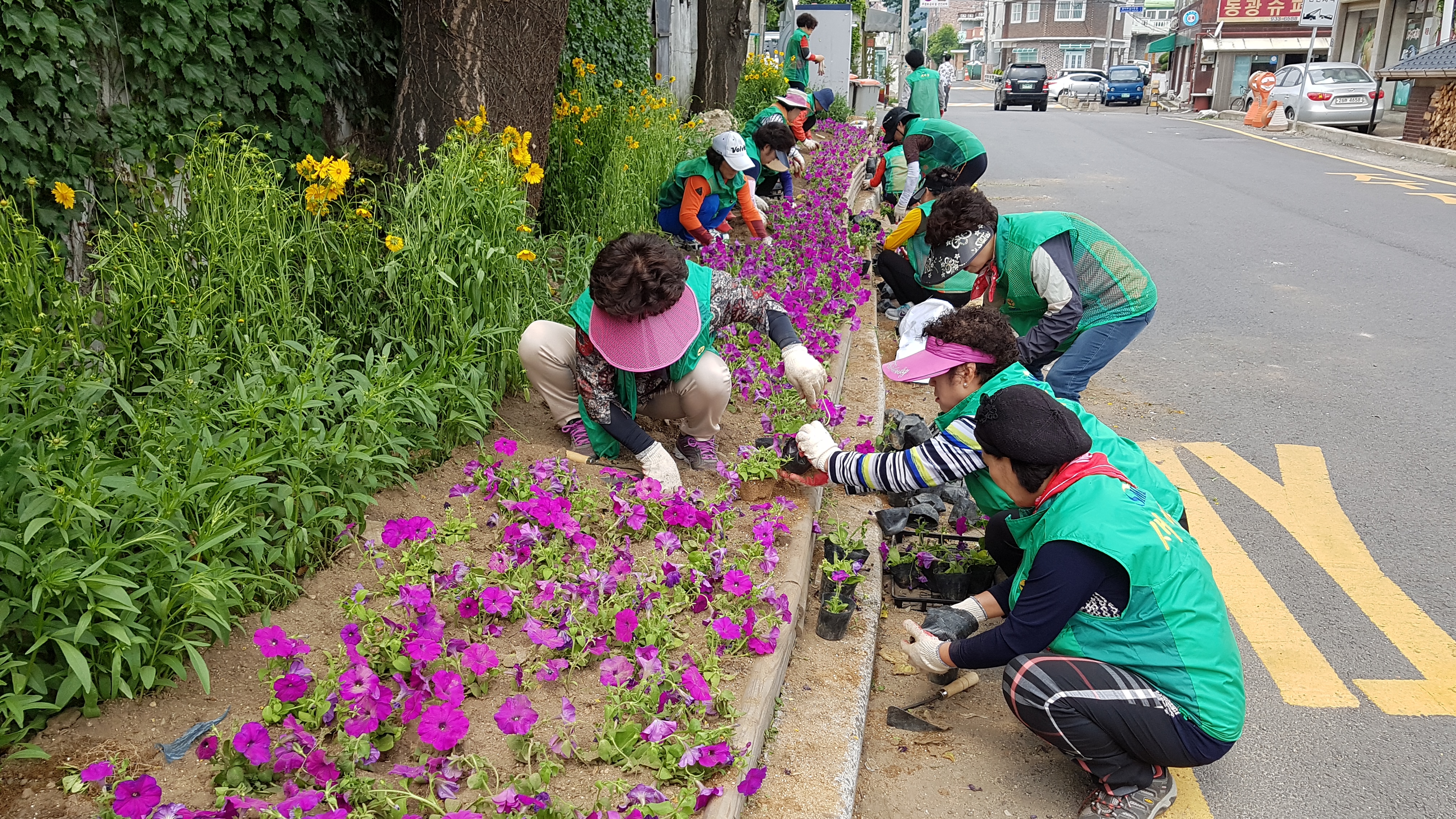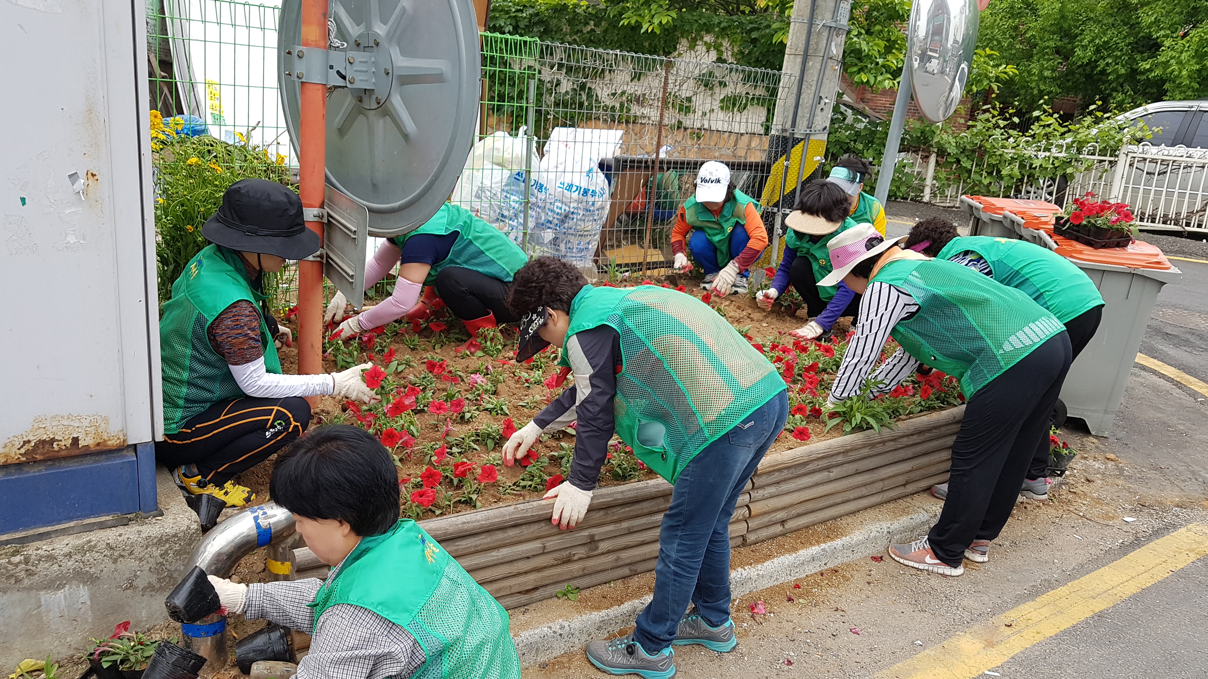 회장님들 꽃 심기 정말 힘드셨죠? 특히 이곳은 쓰레기장 옆이라...ㅠ.ㅠ 그래도 며칠후면 아무도 모를꺼예요 쓰레기장 옆인지.... 넘 이뻐서 ~.^