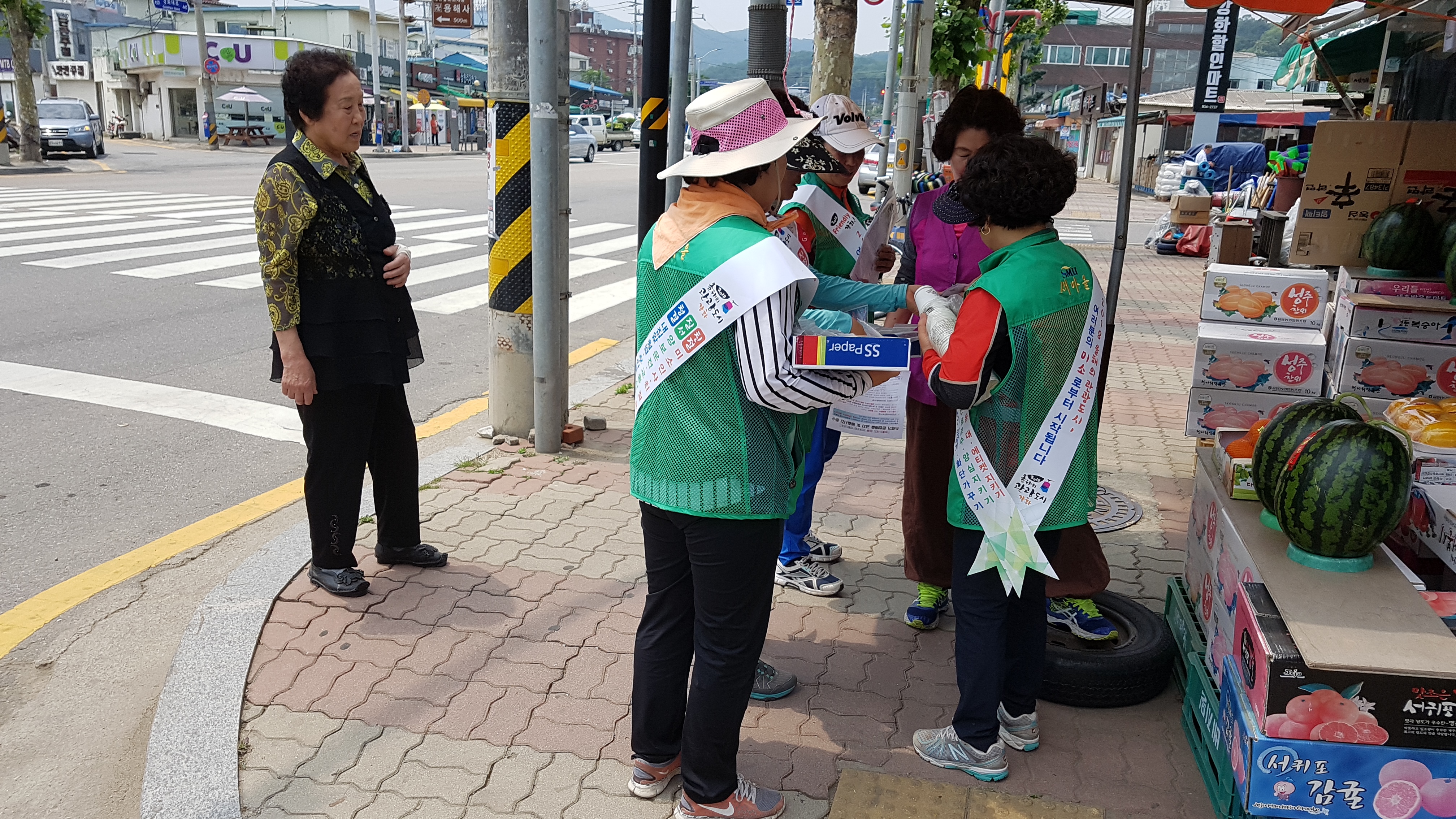 '지금도 잘 해주시지만 한 번 더 부탁드릴께요.....하시며 쓰레기 배출시간 준수 홍보물을 나눠드리며 홍보해주시니 주민들도 회장님들도 모두가 보람된 시간^^