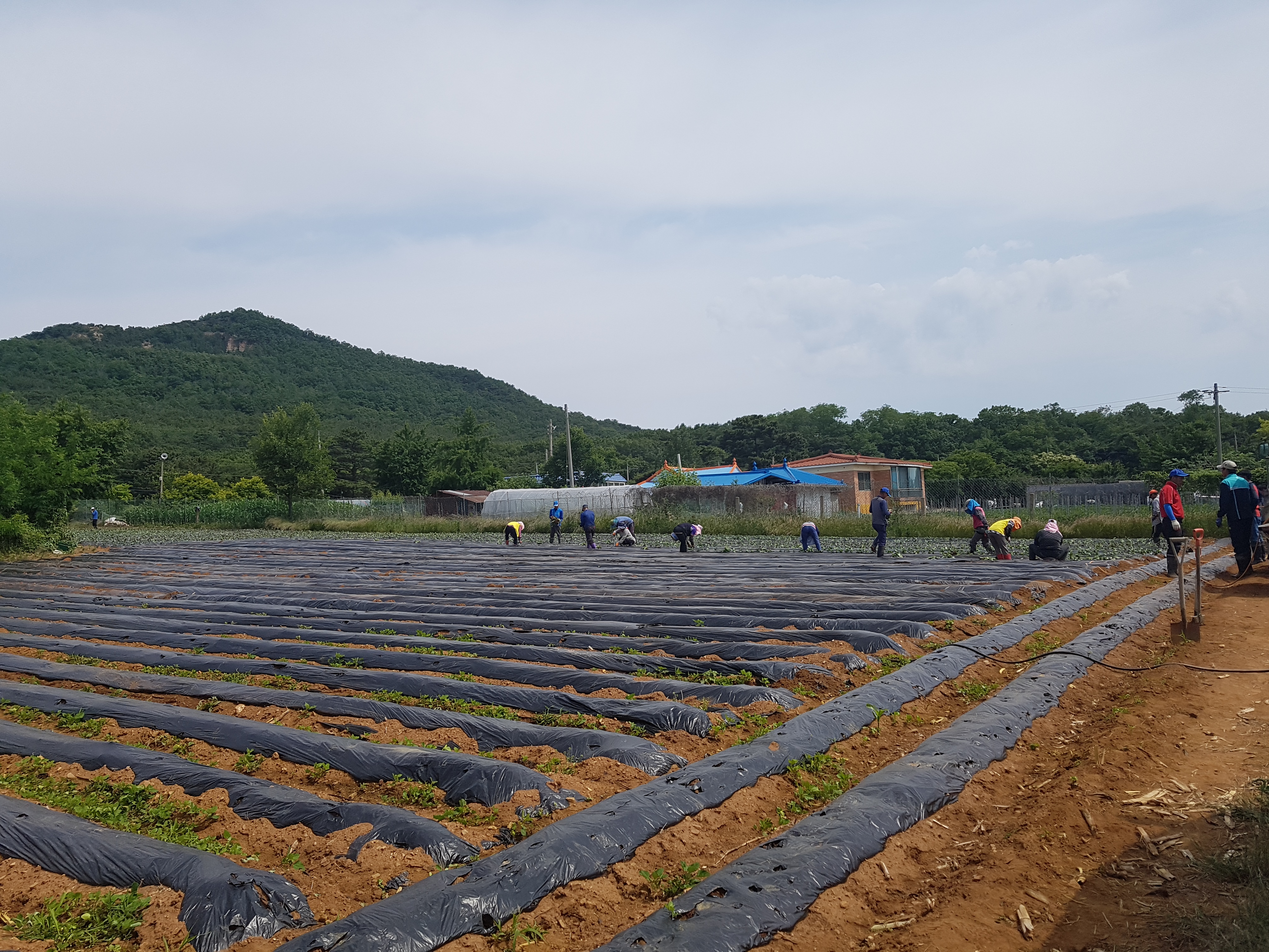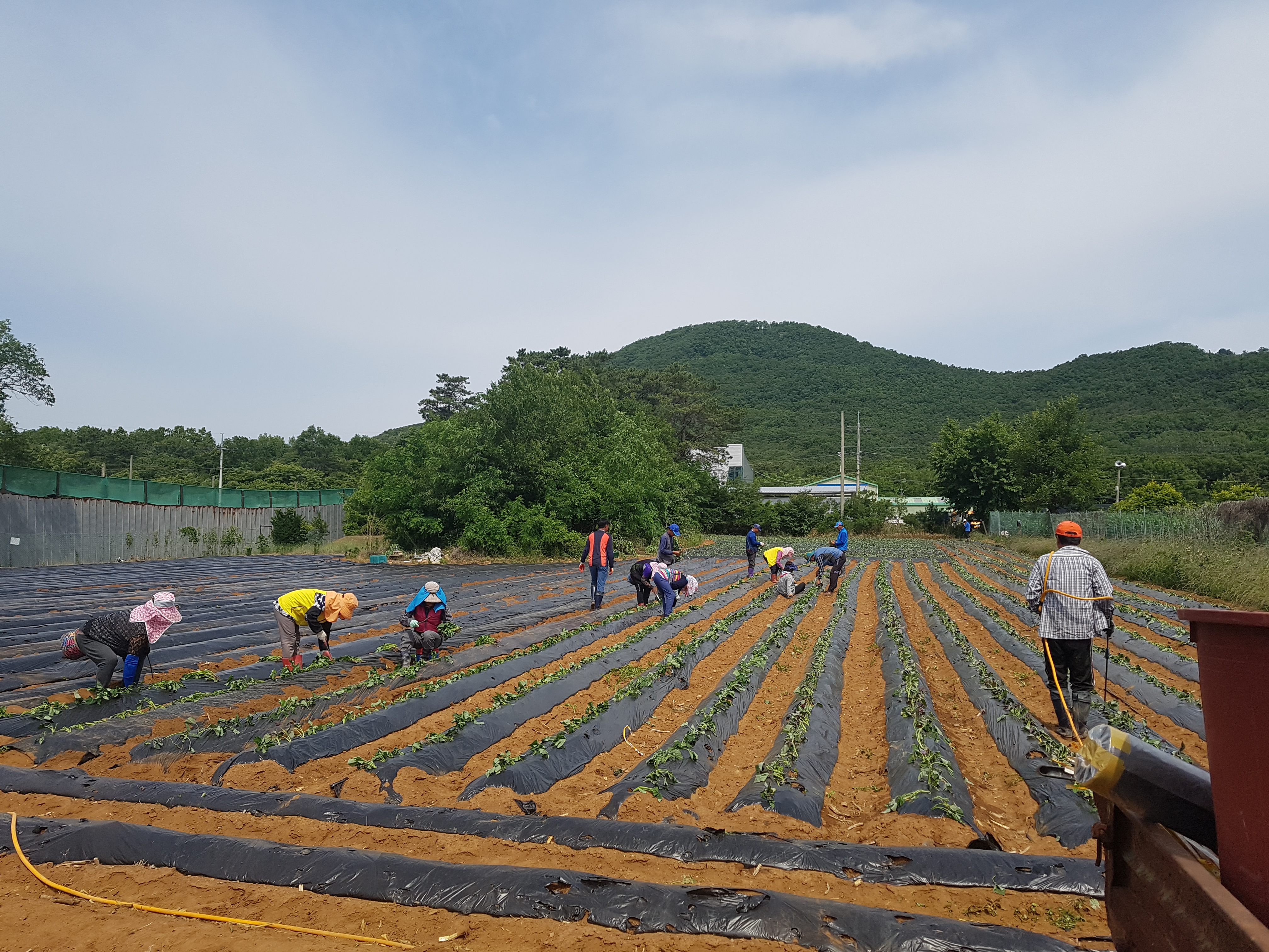 밭을 갈고 물을 주면서 2,000㎡의 농지에 고구마 모종 심기를 완료했다.
