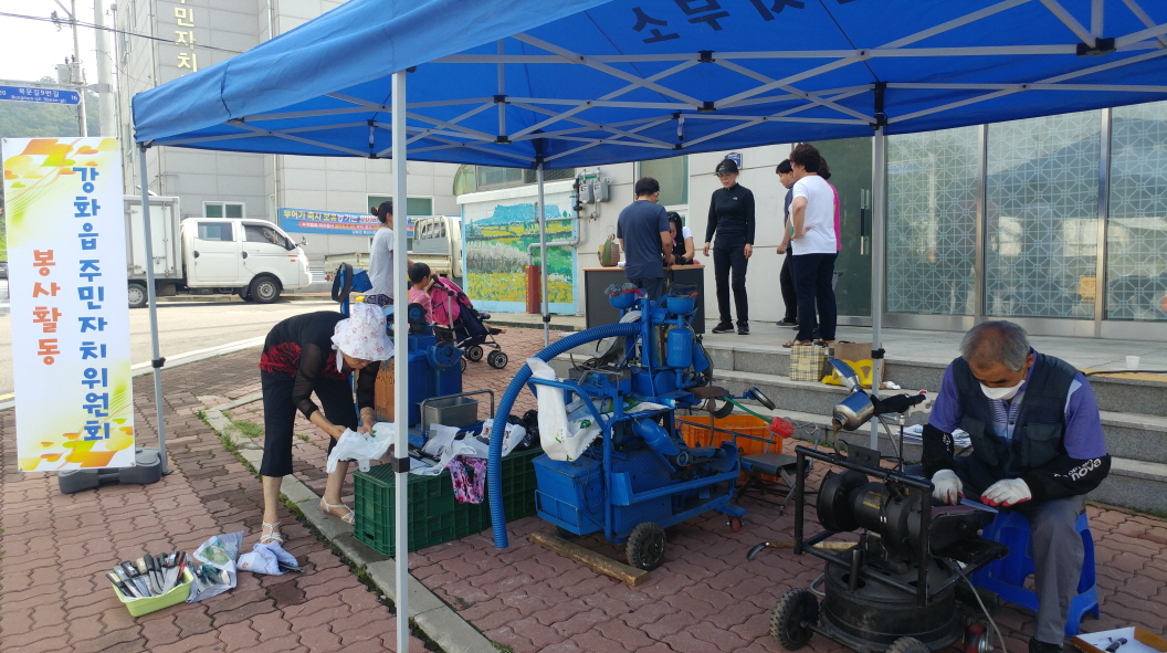 이 행사는 강화읍주민자치위원회 자치분과장으로 애쓰는 권영욱씨가 직접 개발한 칼갈이 기계를 이용 봉사에 나섰다.