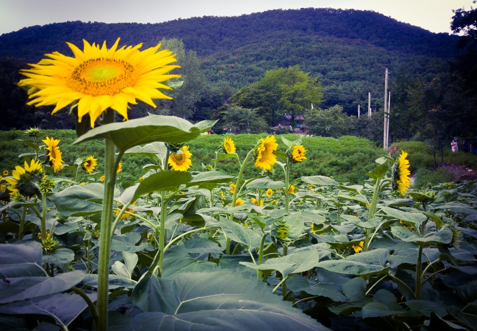 교동향교 홍살문에서 교동향교 입구까지 걸어가는 길가에는 약 1만㎡의 군락지를 이룬 해바라기들이 저마다 활짝 웃으며 관광객들을 반겨주고 있다.