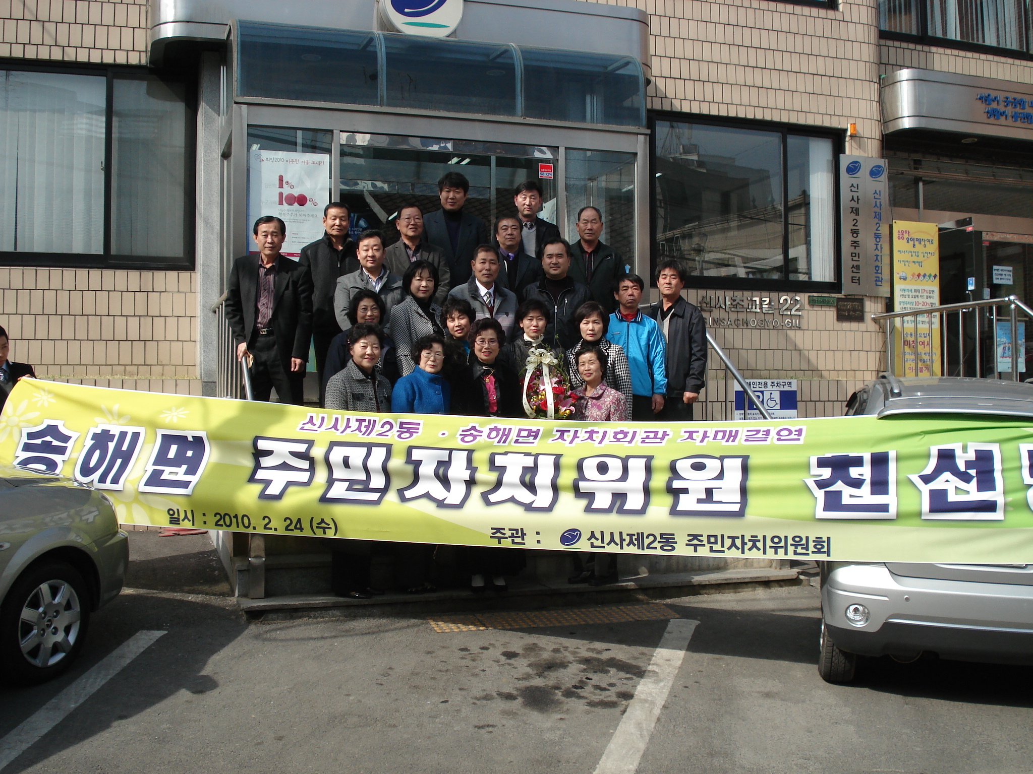 2010.02.24(수) 송해면 자매결연지인 서울시 은평구 신사2동 주민자치센터를 친선방문하여 간담회를 개최하였습니다.