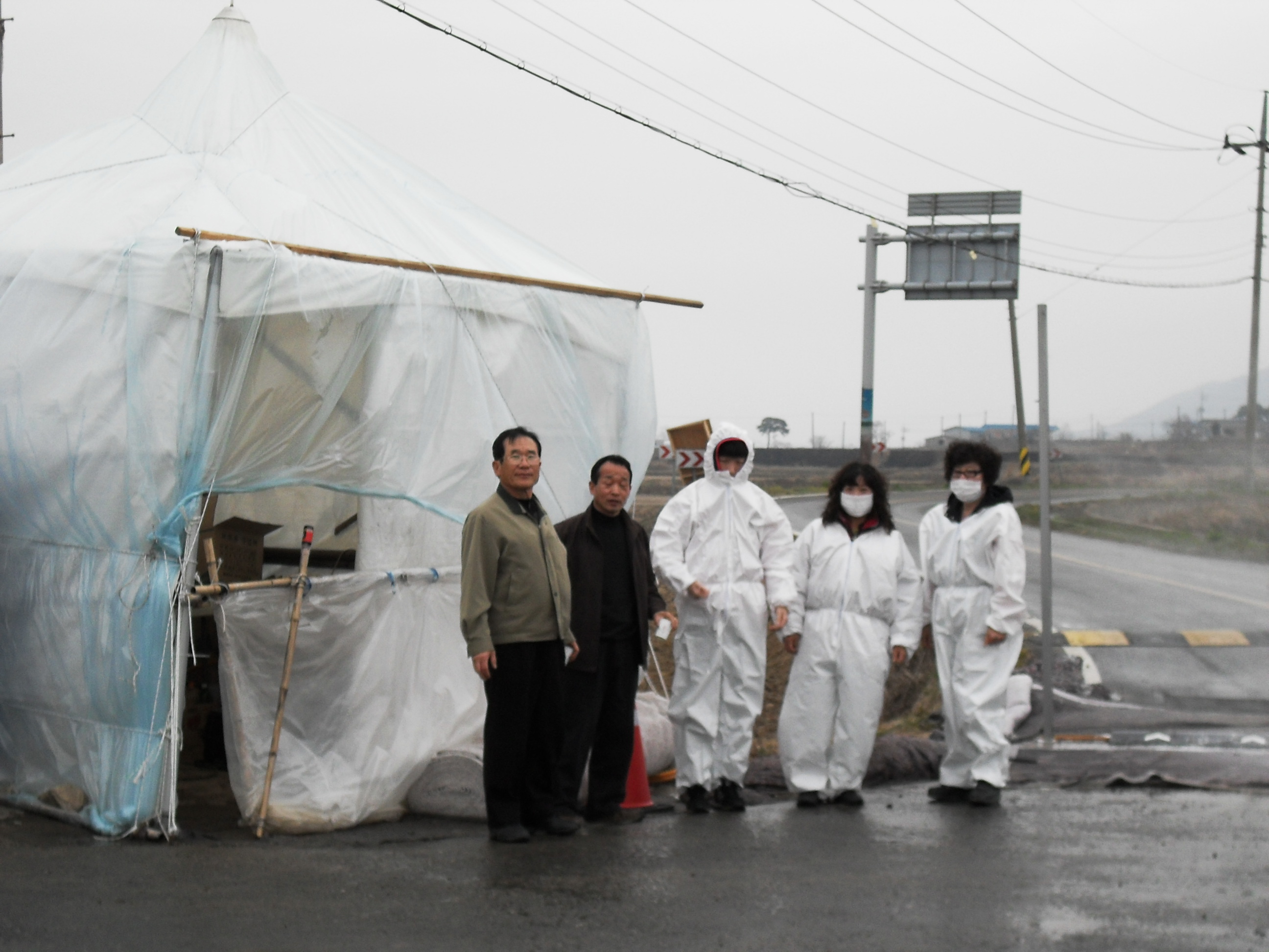 하점면 주민자치위원회(위원장 : 김낙근)는 지난 4월 8일 선원면 금월리에서 발생한 구제역으로 인해 현재 운영 중인 하점면 구제역 방역 초소 근무에 동참하고자 하는 뜻을 하점면장에게 전달하였다. 이에 하점면장(면장 : 문상복)은 주민자치위원회 근무조를 1일 8시간씩 3개조로 나누어 총24명이 교대로 근무할 수 있도록 근무조를 편성하여 지난 4월 19일부터 구제역 방역 초소 근무를 시작하였다.